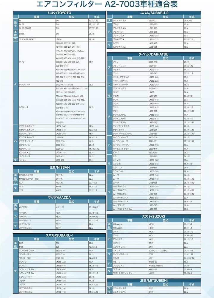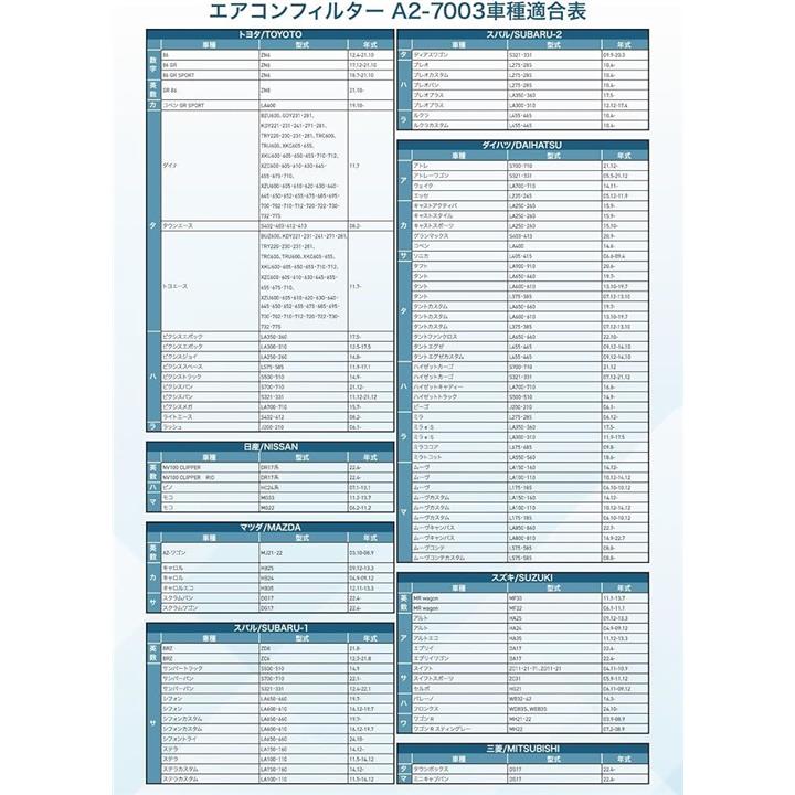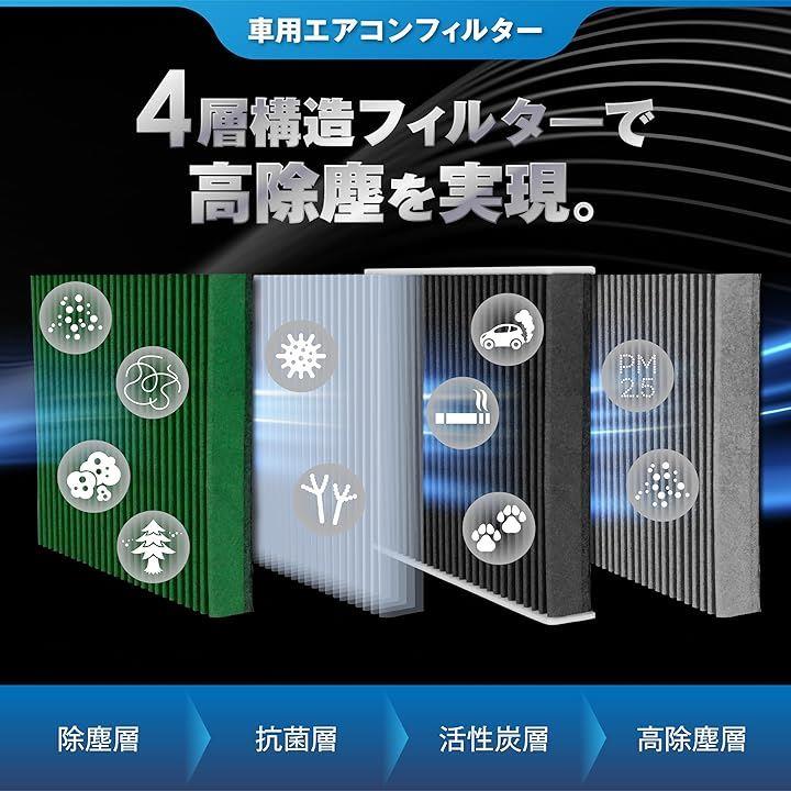 互換品 ダイハツ/スズキ/トヨタ/スバル車用 カーエアコンフィルター ハイゼット エブリイ スイフト 4層 活性炭 抗菌 花粉&PM2.5対策