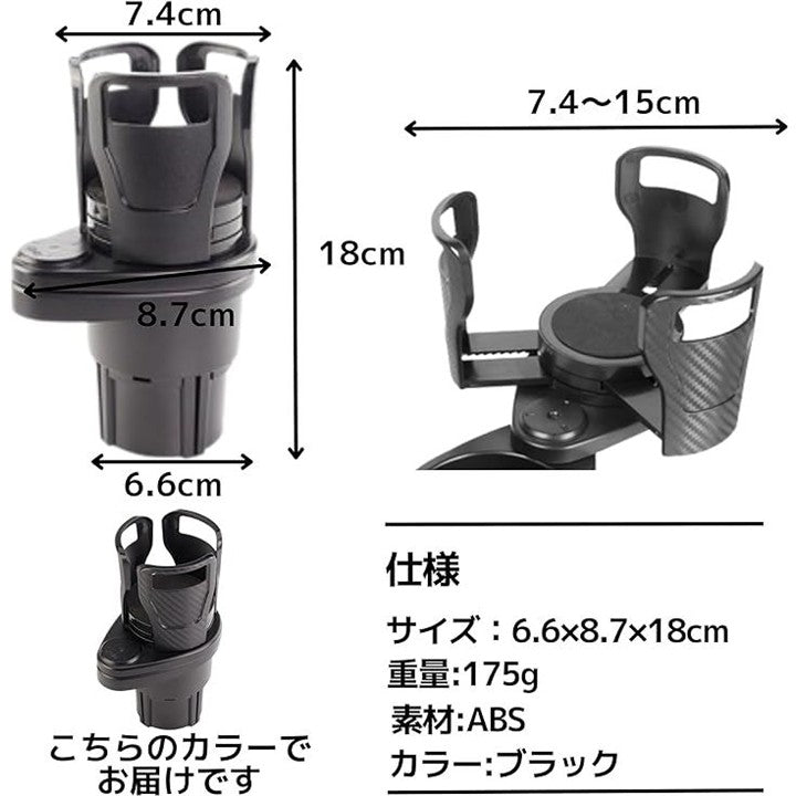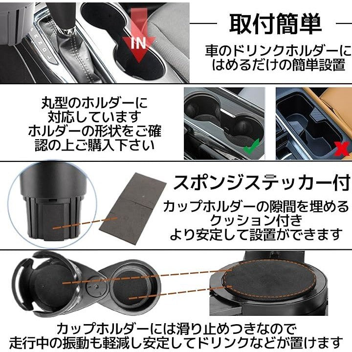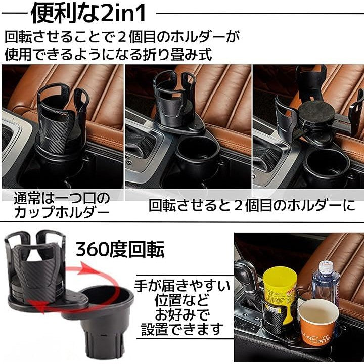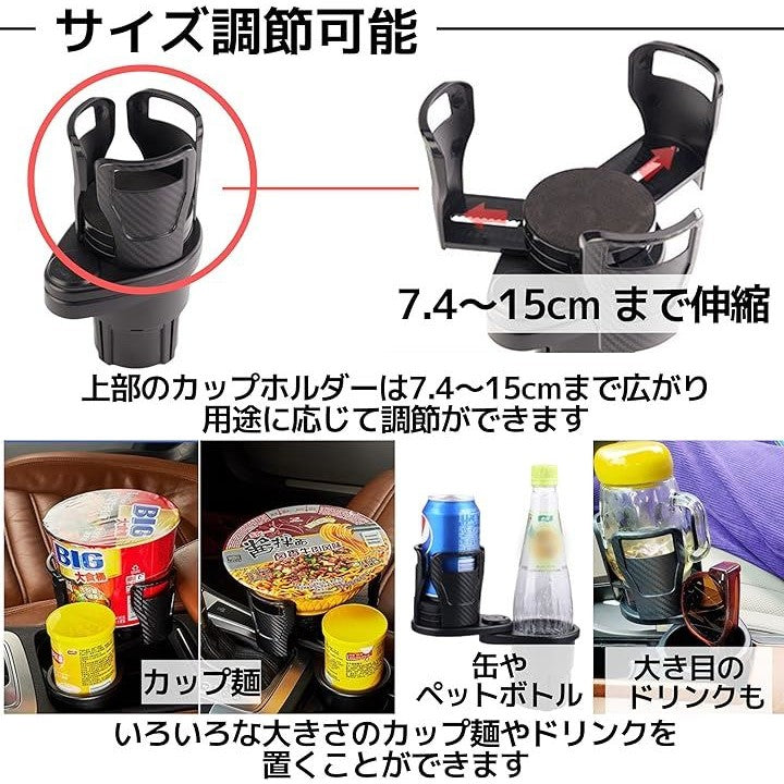 車 ドリンクホルダー 増設 2個置き 360˚ 回転 調節可能 カーボン製 ドリンク以外にも カップラーメン ホールド可能 黒