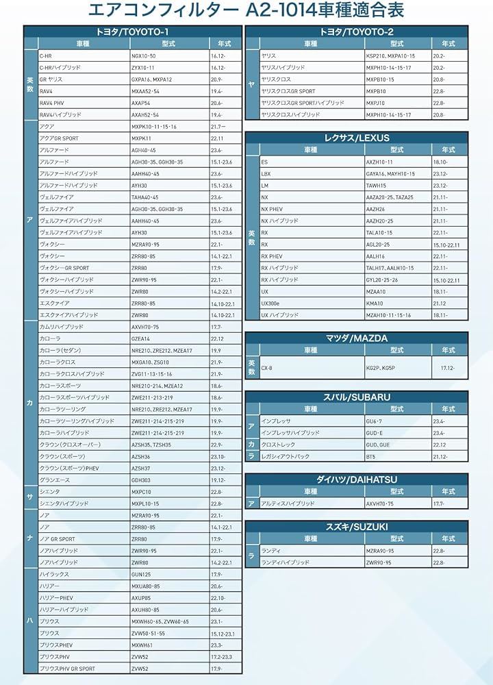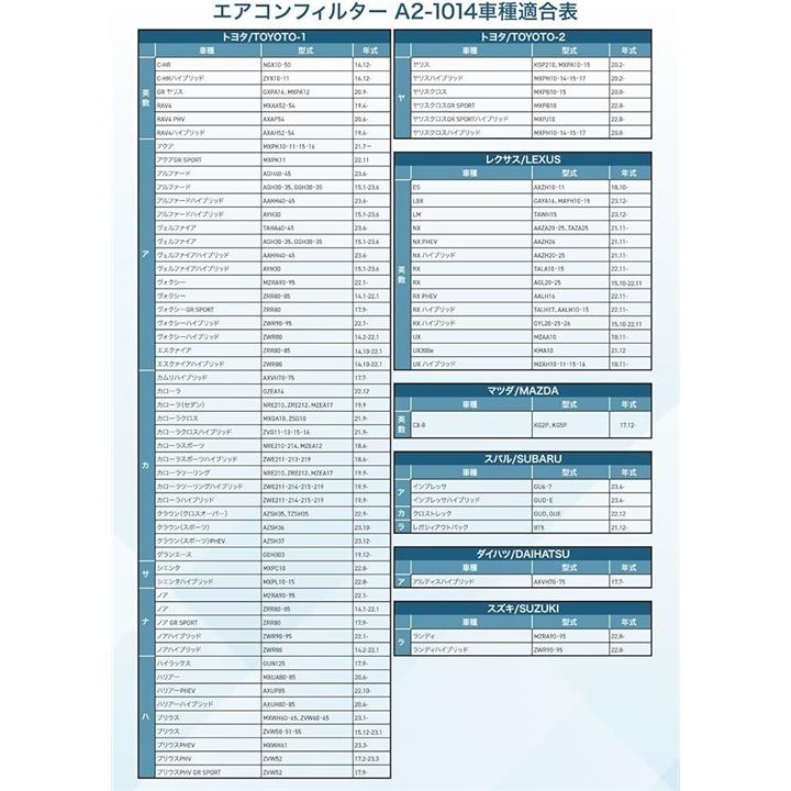 互換品 トヨタ/レクサス/スバル/スズキ/ダイハツ車用 カーエアコンフィルター ヴェルファイア ヤリス 4層 活性炭 抗菌 花粉&PM2.5対策