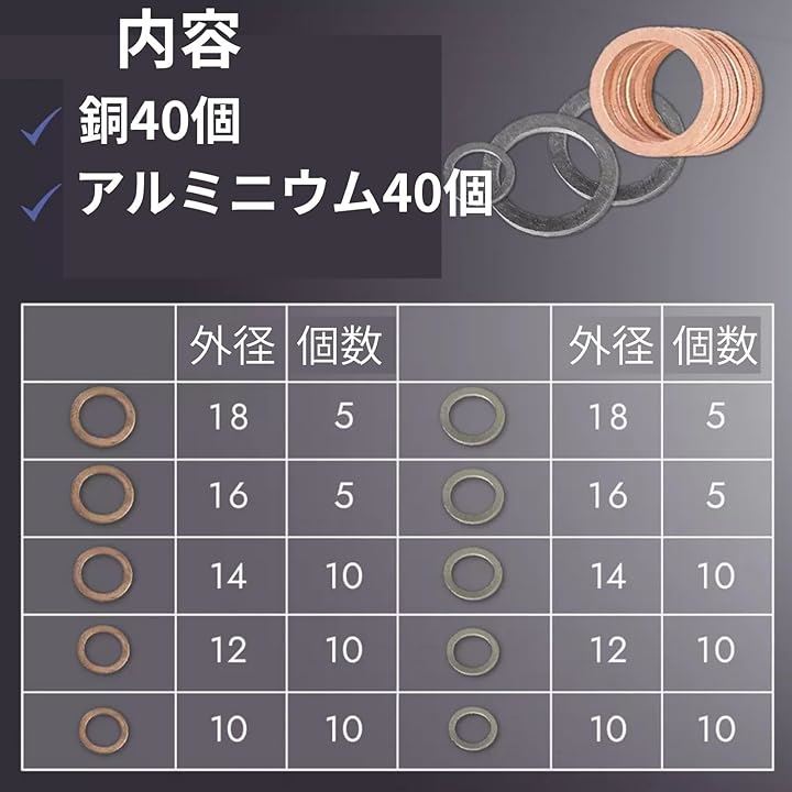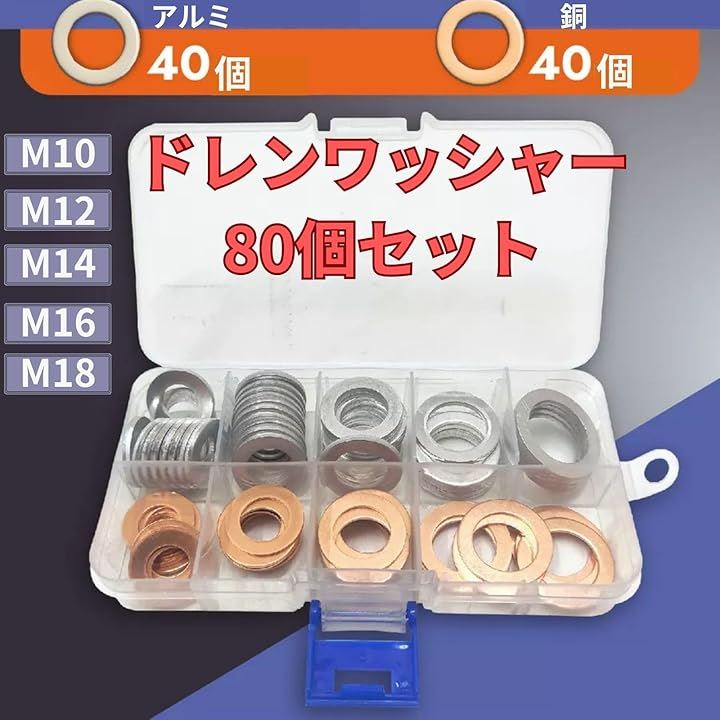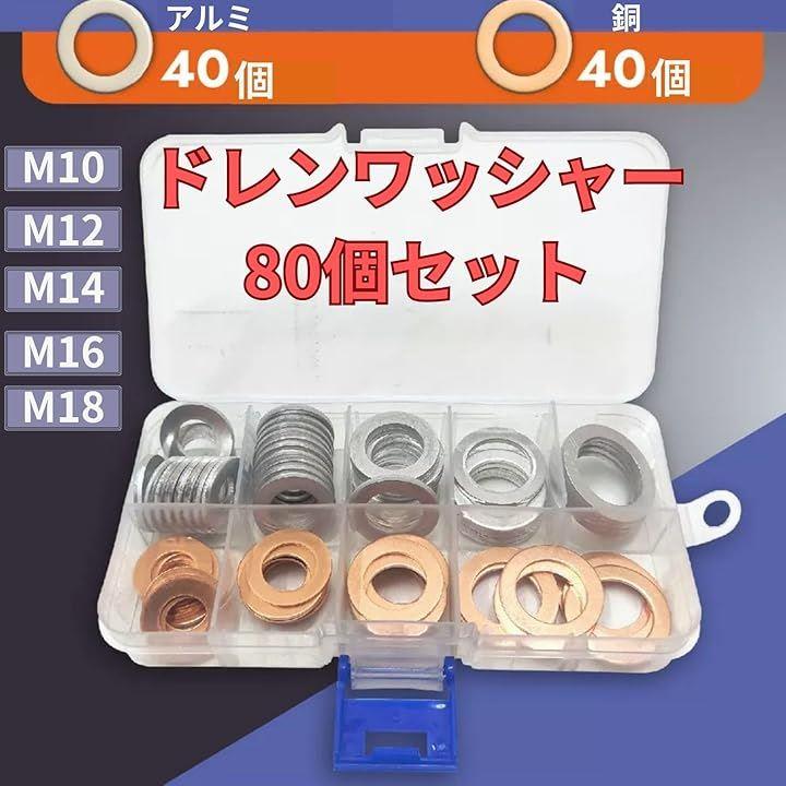 オイル ドレンパッキン アルミワッシャー ドレンワッシャー 銅ワッシャー M10 M12 M14 M16 M18 80個セット 耐腐食性 耐久性素材使用