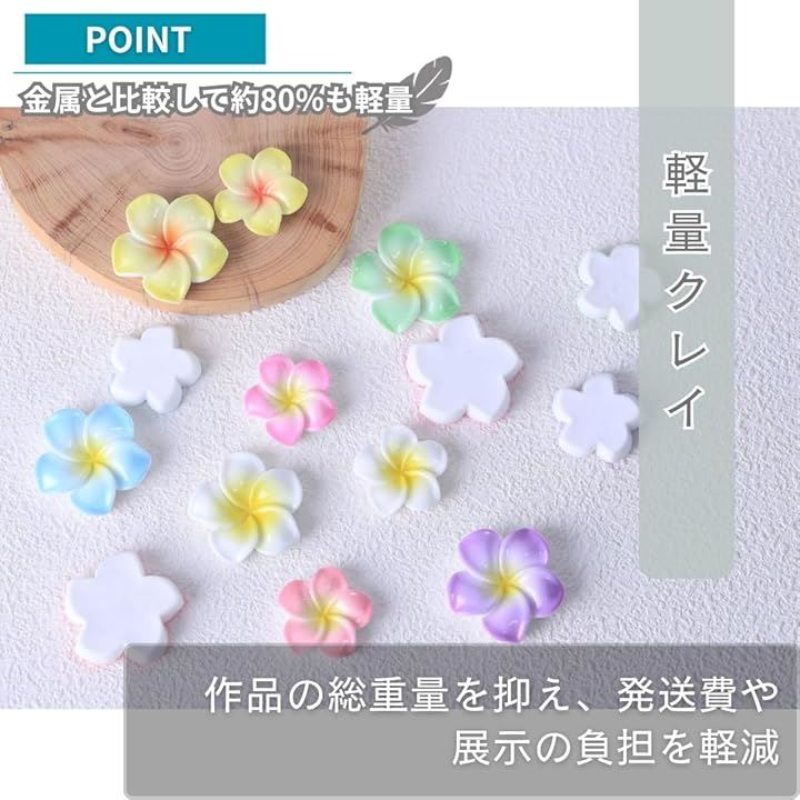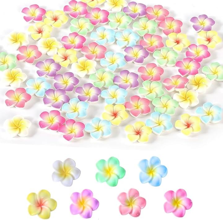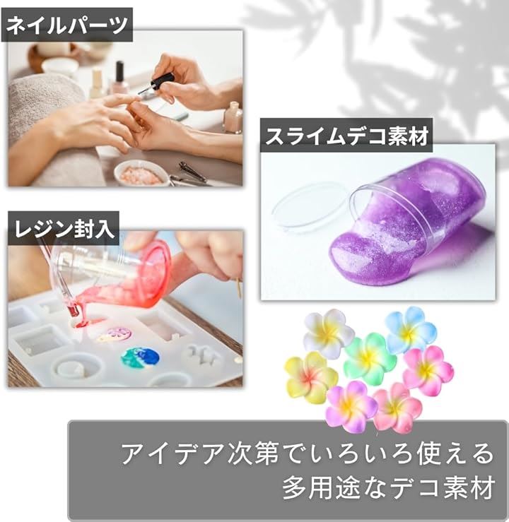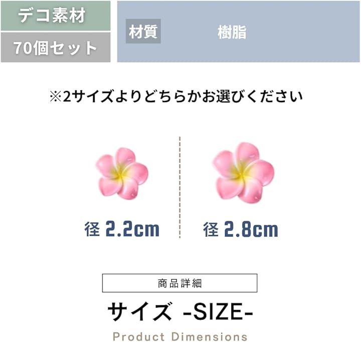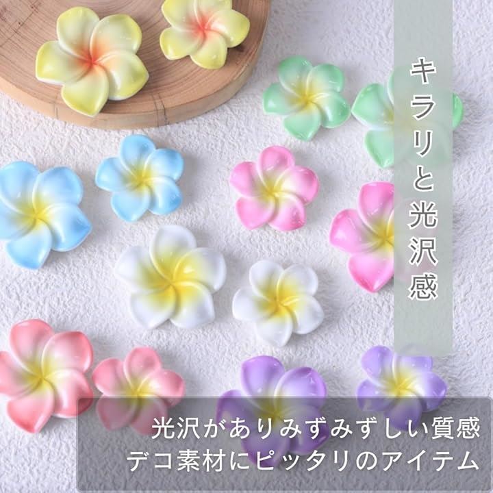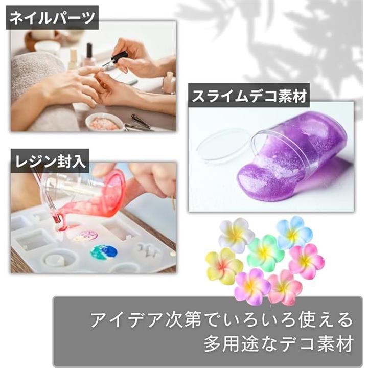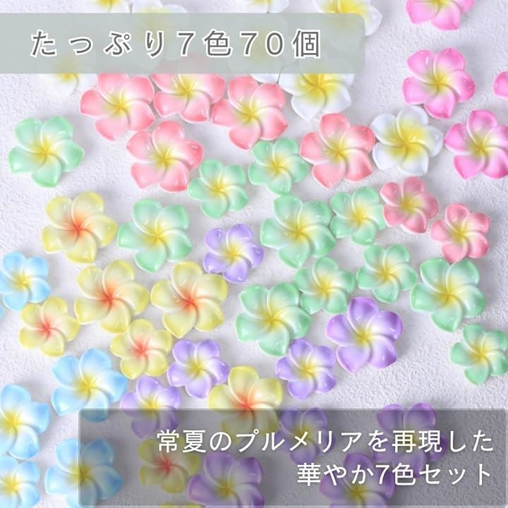 デコパーツ プルメリア 7色 70個セット レジン 花 ビーズ ネイルパーツ