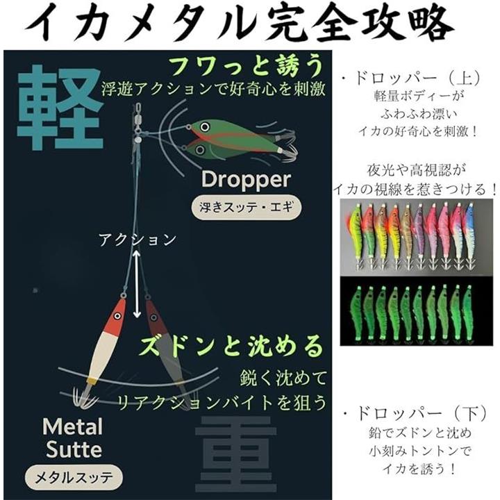 浮きスッテと鉛スッテ両用のバランス設計で、潮の流れやレンジに対応。