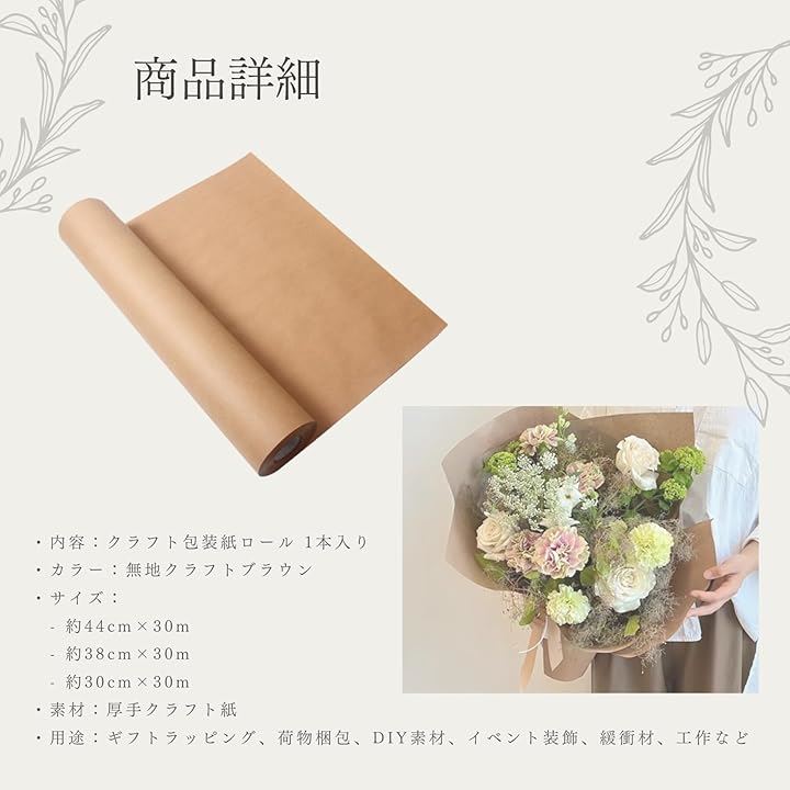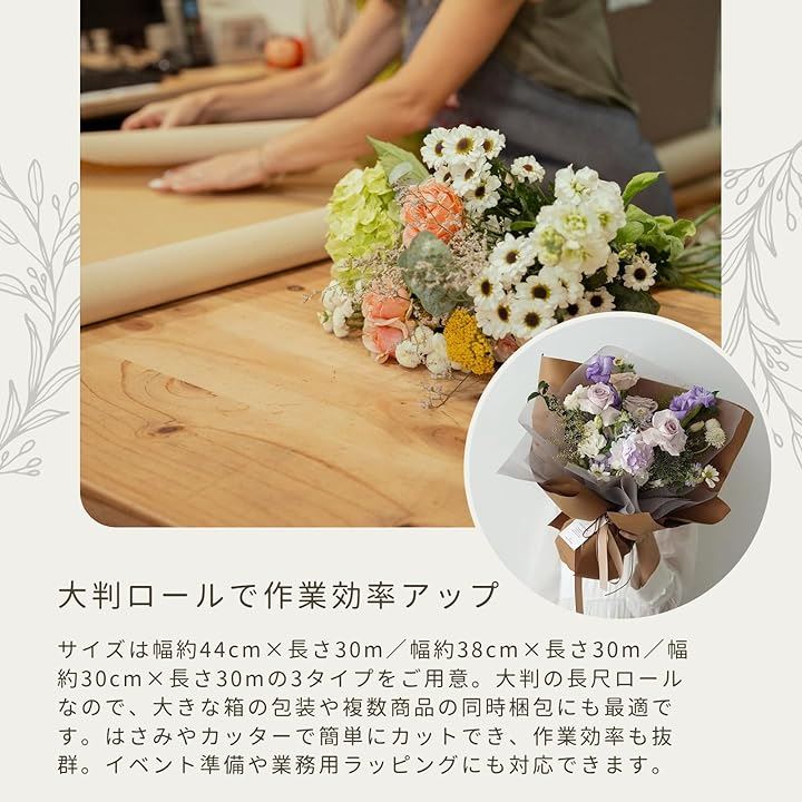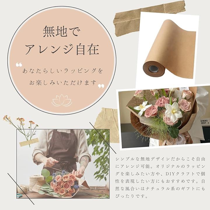 クラフト紙 包装紙 ラッピングペーパー ロール紙 ギフト 梱包 業務用 工芸 工作 ブーケ用
