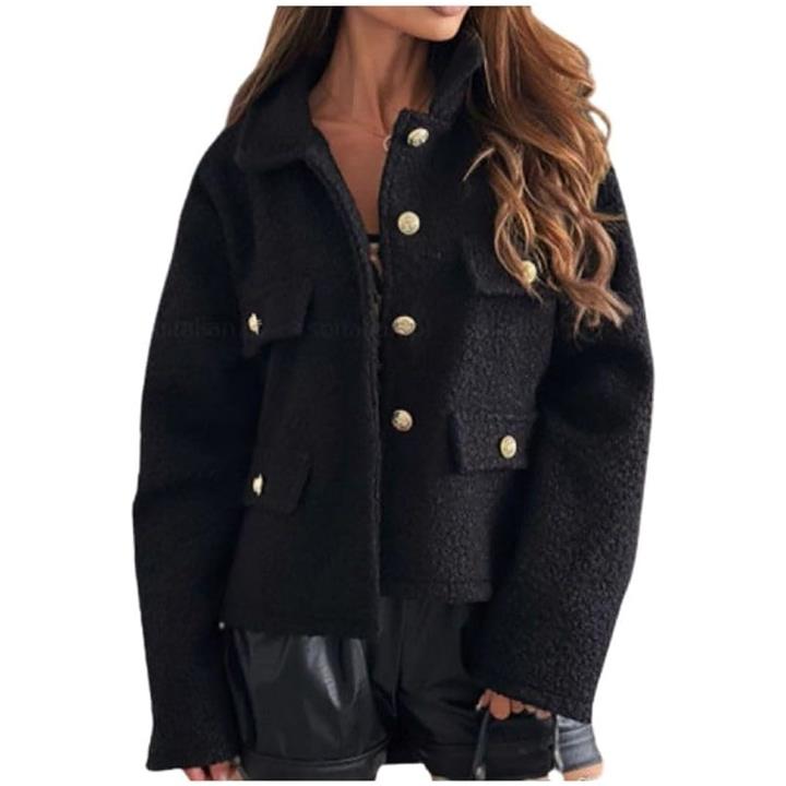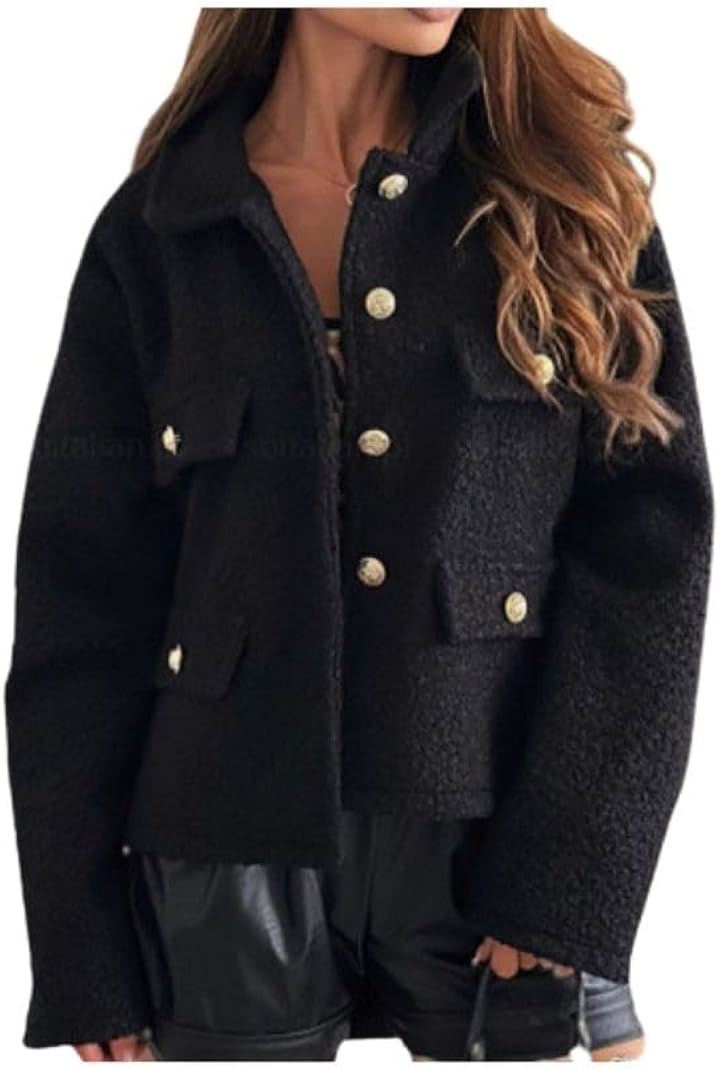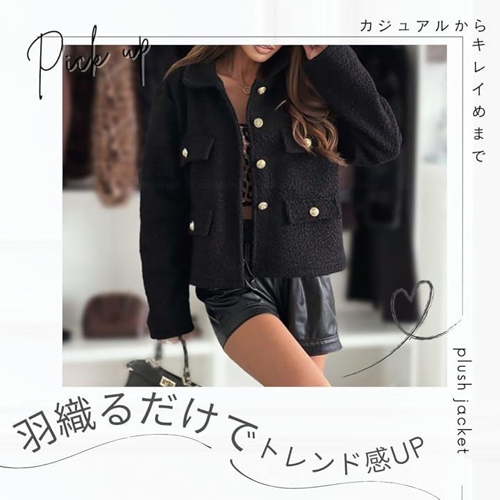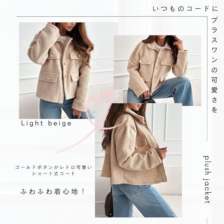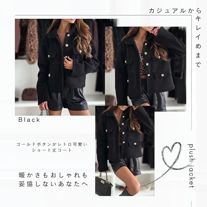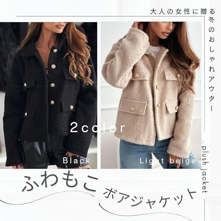 ふわふわボアジャケット レディース ショート丈 アウター 秋冬 暖かい ゴールドボタン付き 大人カジュアル