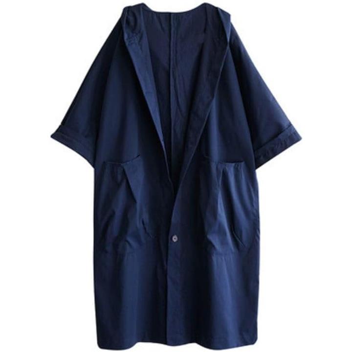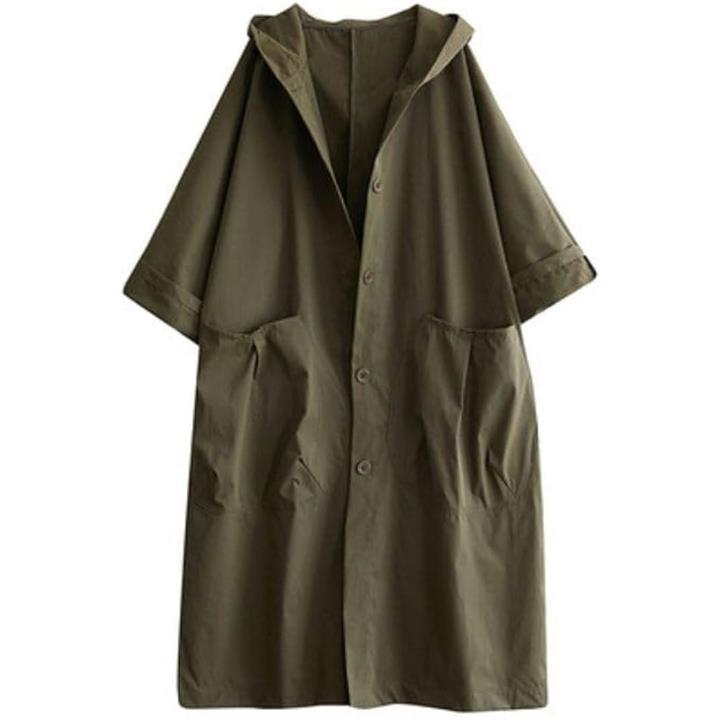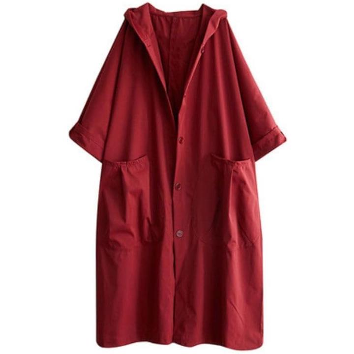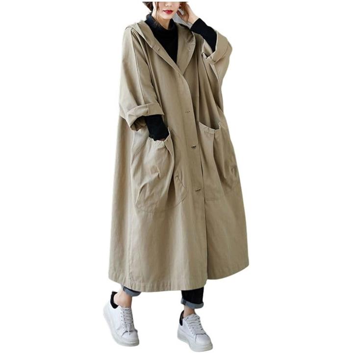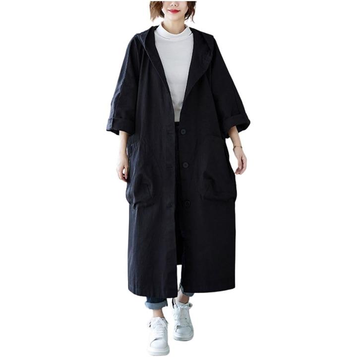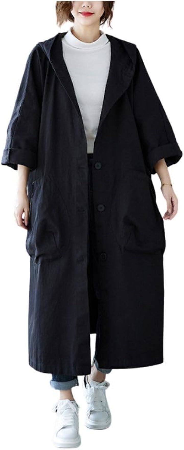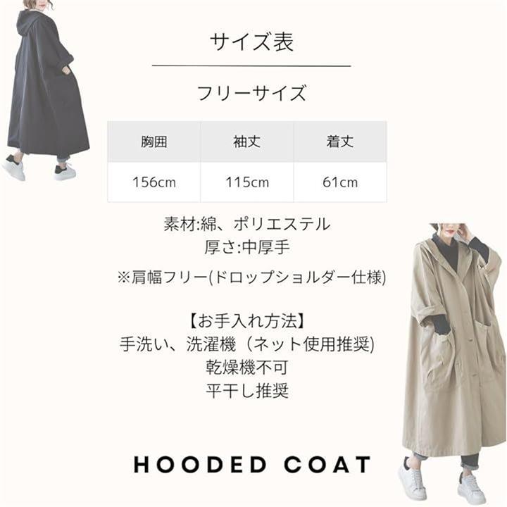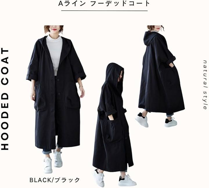 Aライン フーデッドコート レディース 軽アウター ロング丈 綿混・5色展開 ゆったりビッグシルエット