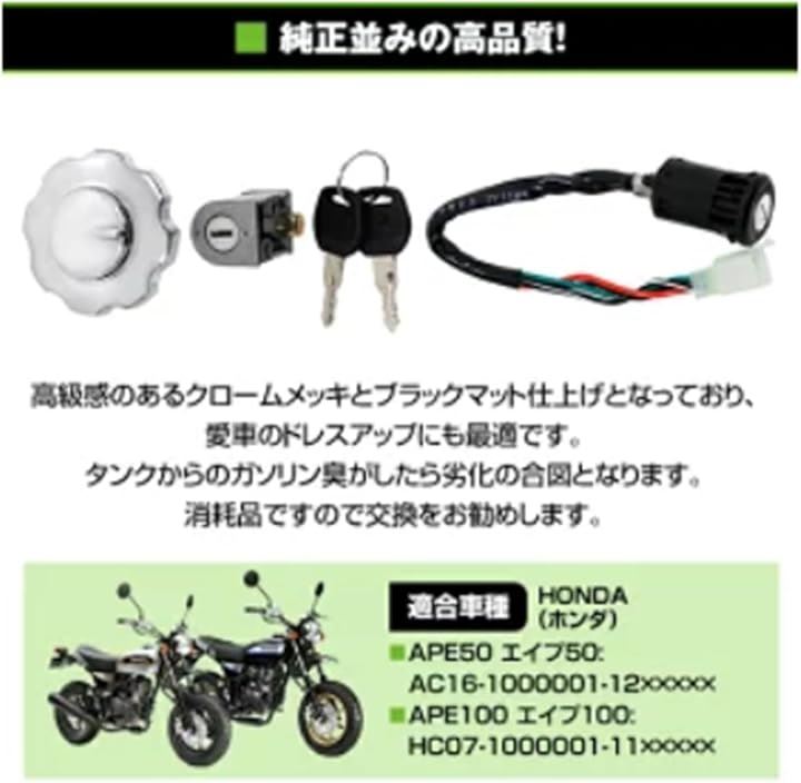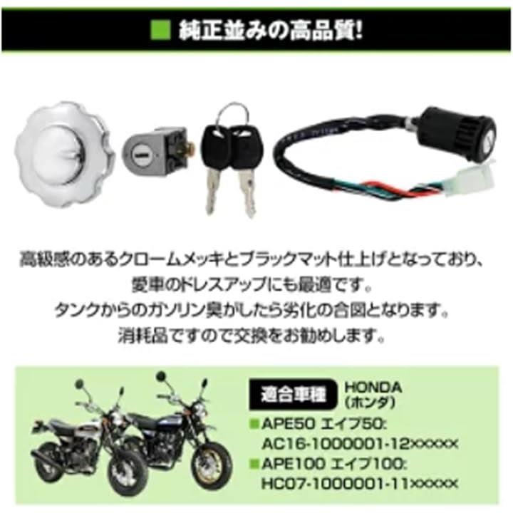 互換品 ホンダ エイプ50 エイプ100 ガソリンタンクキャップ キーシリンダー セット 純正タイプ