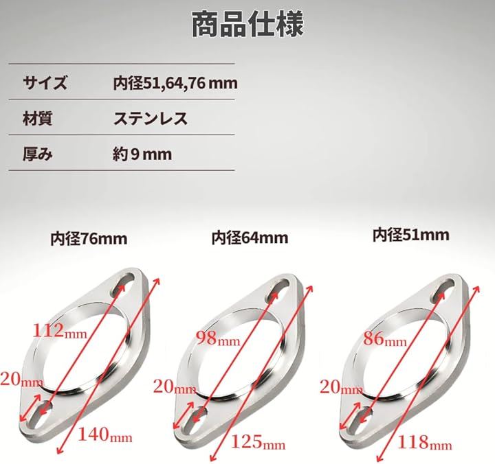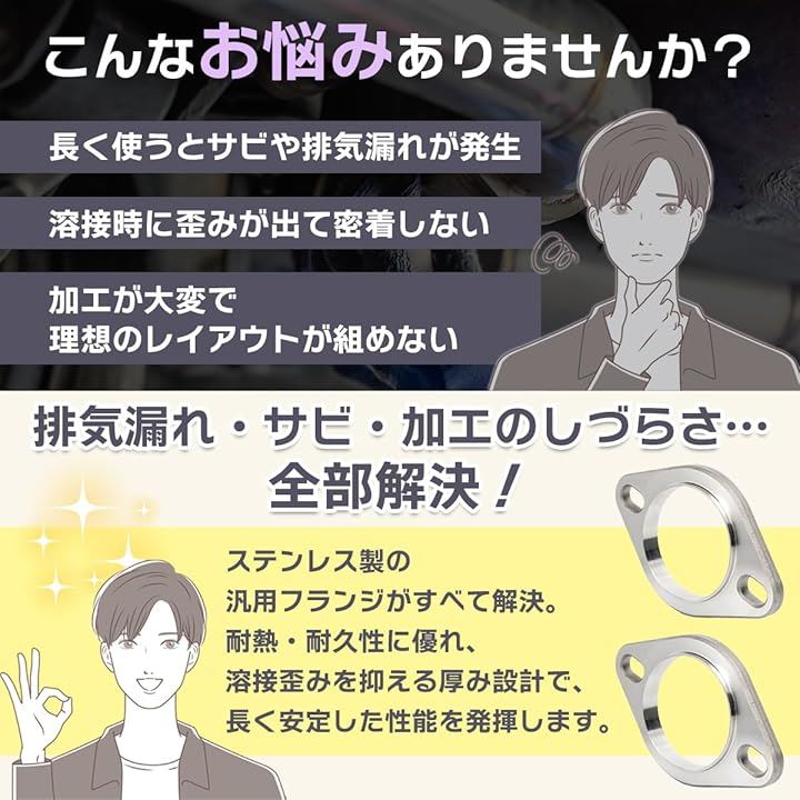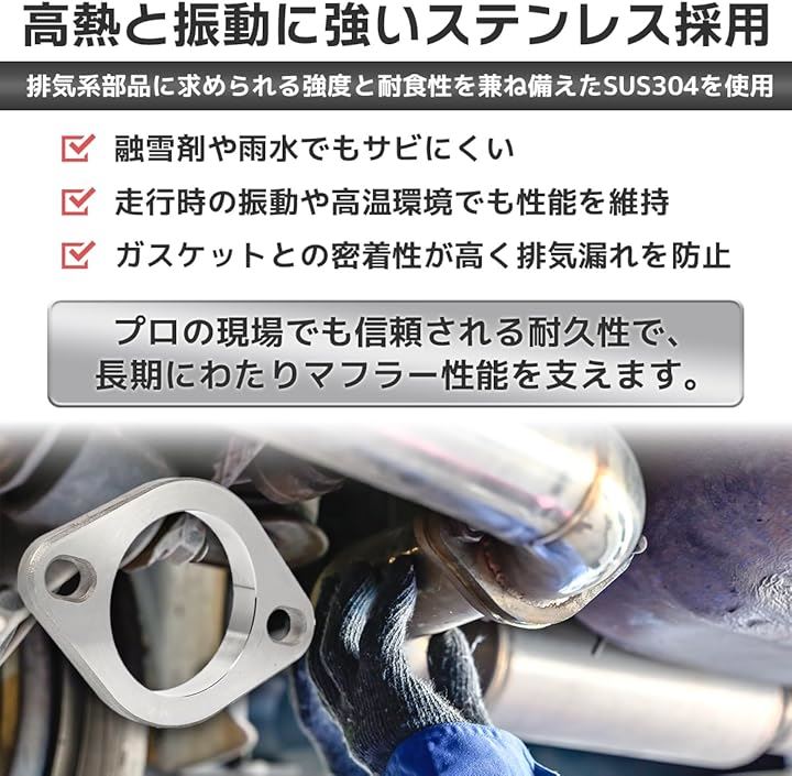 マフラー フランジ 汎用 SUS 漏れない錆びない ステンレス 溶接 エキゾースト 2穴 長穴 ブラケット 補修