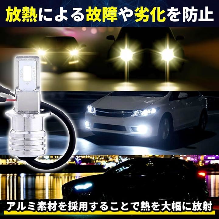 互換品 ヘッドライト h3 led フォグ ランプ ショート 車 トラック 12v 24v バルブ cob アルミ 小型 コンパクト 2個