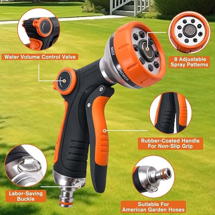 散水ノズル 8パターン切替 普通ホース ガーデンノズルスプレー ガーデンホースノズルスプレーヤー 庭用ホースノズル 園芸 流量調節付 ガーデニング用品