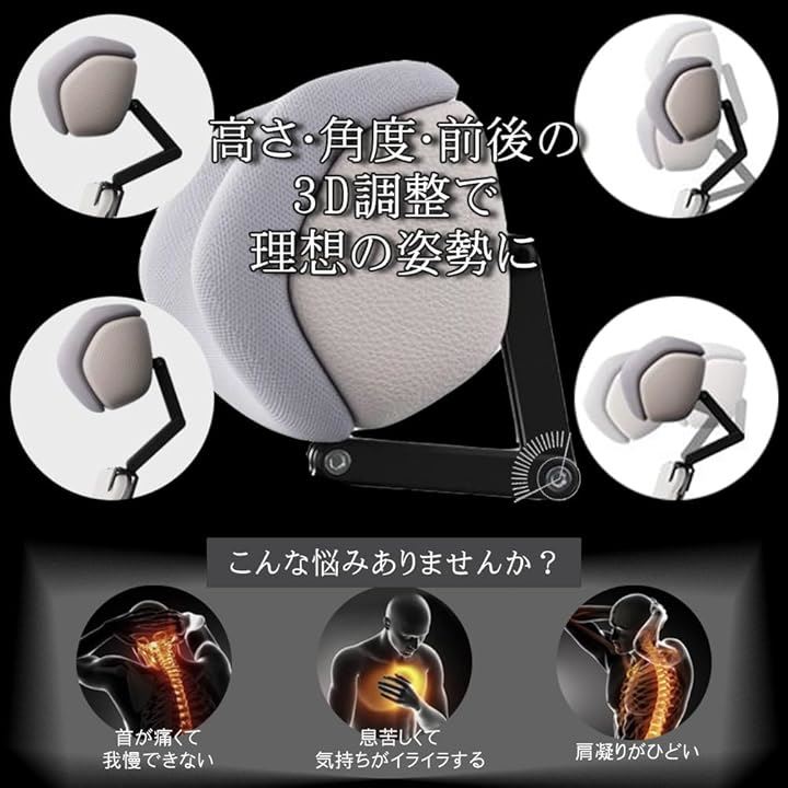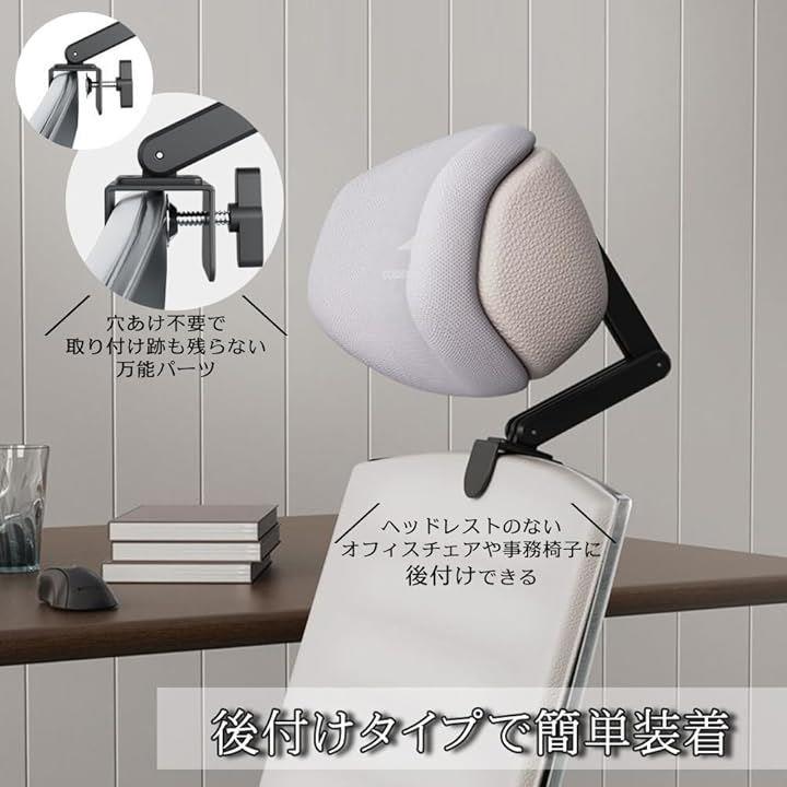 ヘッドレスト 後付け 改良モデル オフィスチェア 用 メモリーフォーム 首サポート 高さ 角度 調整 可 クランプ 式