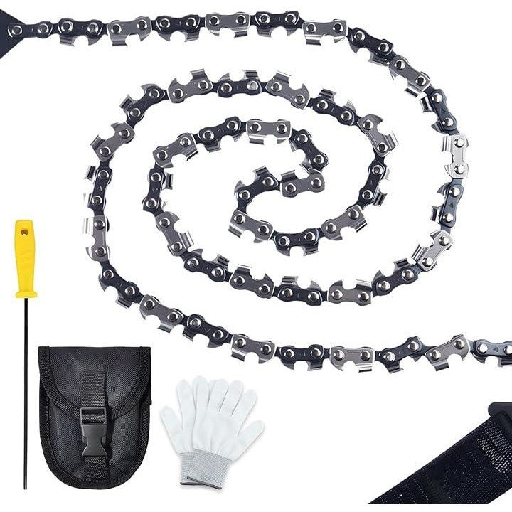 ポケットチェーンソー 48歯 ポケットソー 36インチ ハンドチェーンソー 手動ノコギリ 手動ワイヤーソー 合金鋼 折り畳み式 金属ヤスリと手袋付き 携帯式