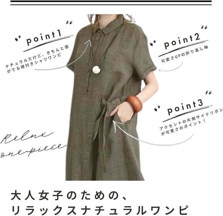 「綿麻素材のナチュラル感」通気性の良い綿麻素材で肌あたりもやさしく、春夏にぴったりの軽やかワンピース。