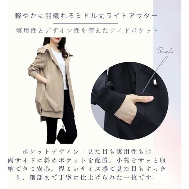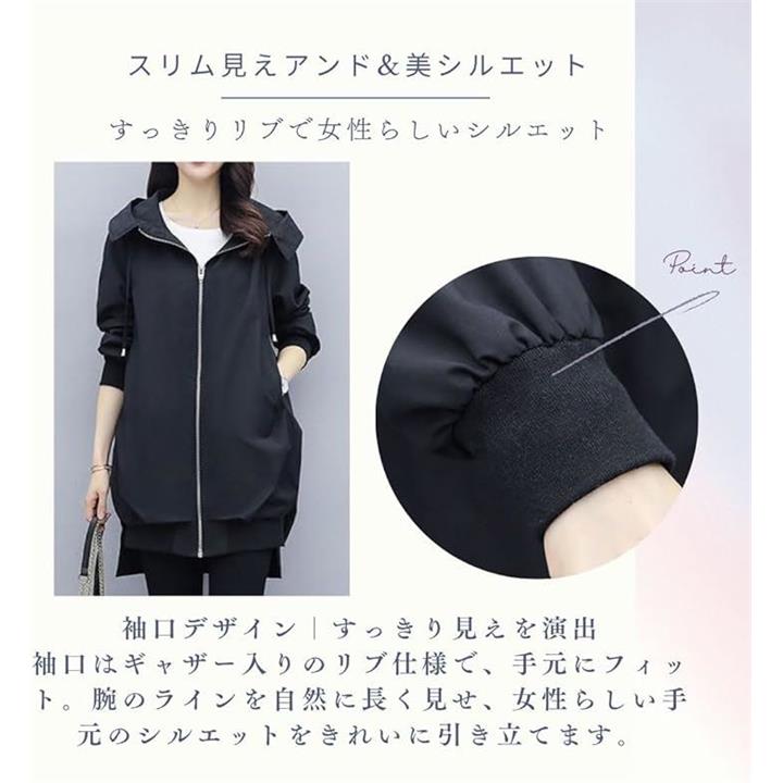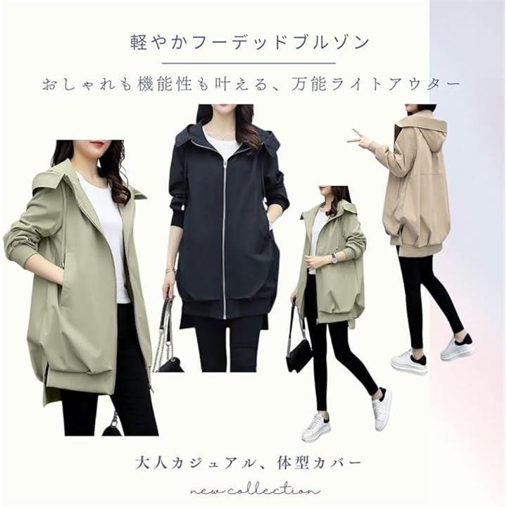 [ROOOOM] 軽やか着心地・フード付き ブルゾン レディース ライトアウター ミドル丈 ジップアップ 体型カバー ジャケット カジュアル きれいめ 大人 シンプル 上着 |