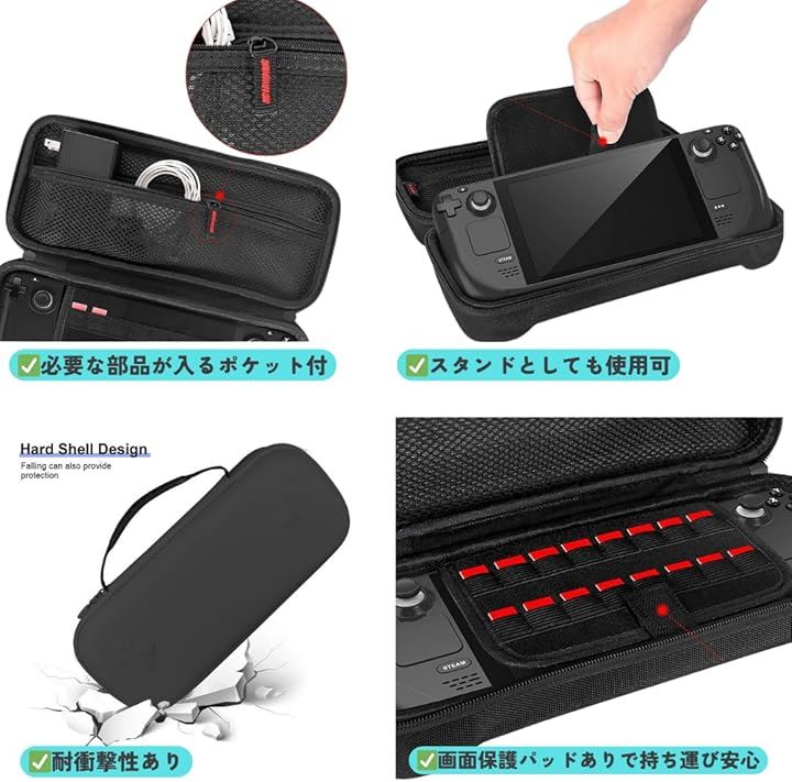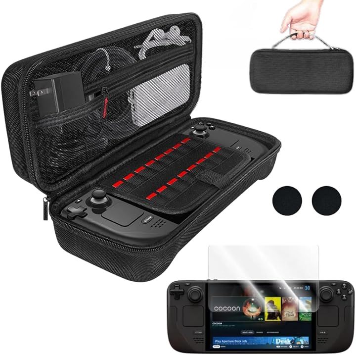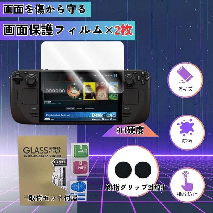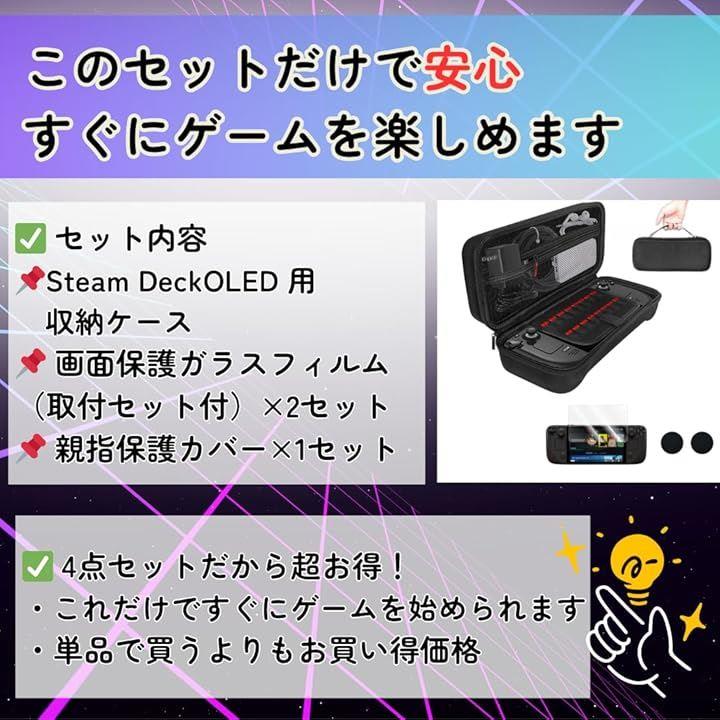 Steam Deck OLED 用 3in1 アクセサリーセット 収納ケース + 強化ガラスフィルム2枚 親指保護カバー 耐衝撃・防水・持ち運び便利スチームデックOLED専用