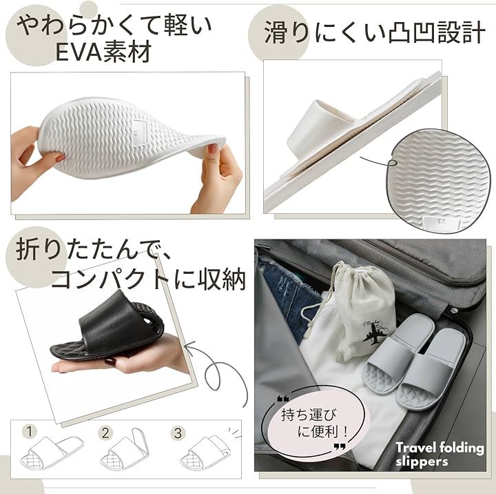 トラベルスリッパや携帯スリッパとして、荷物を減らしたいミニマリストにもおすすめのアイテムです。
