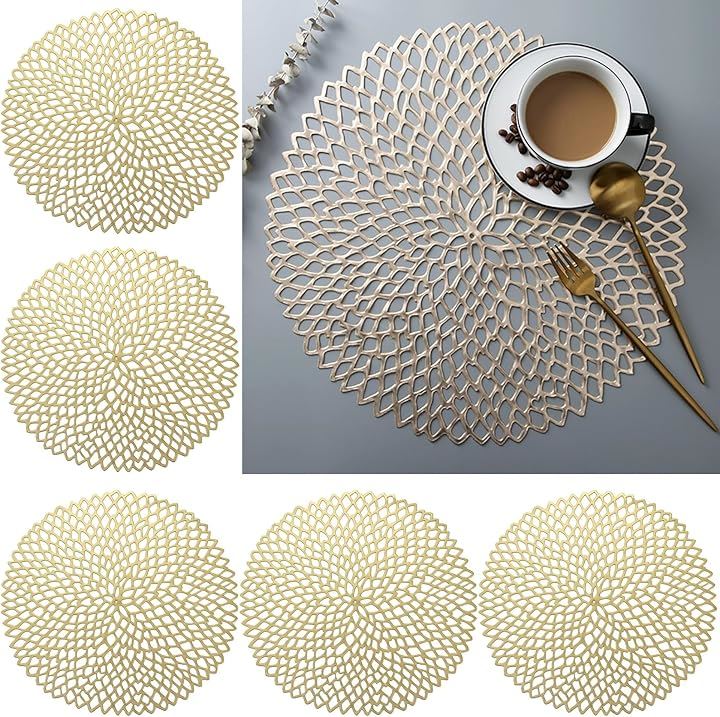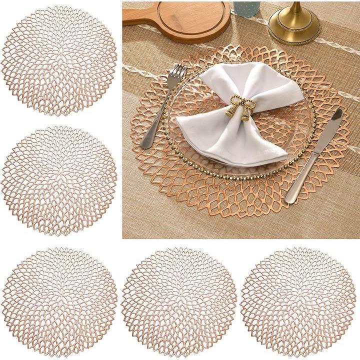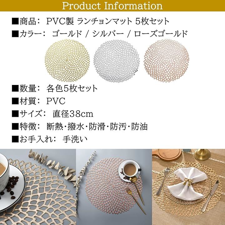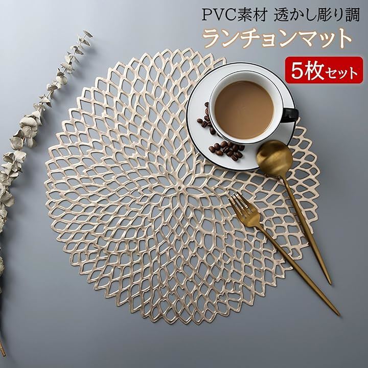 ランチョンマット おしゃれ 丸型 5枚 プレースマット PVC 滑り止め 北欧 撥水 耐熱 断熱 防汚 洗える