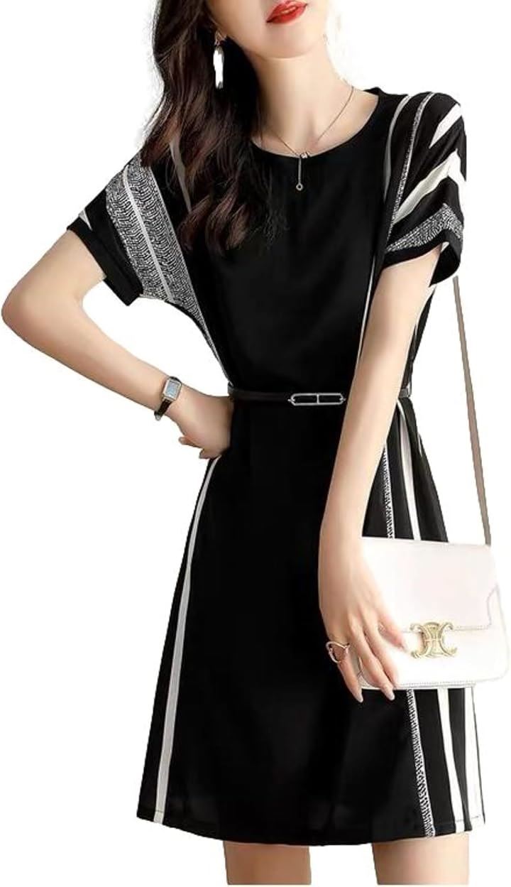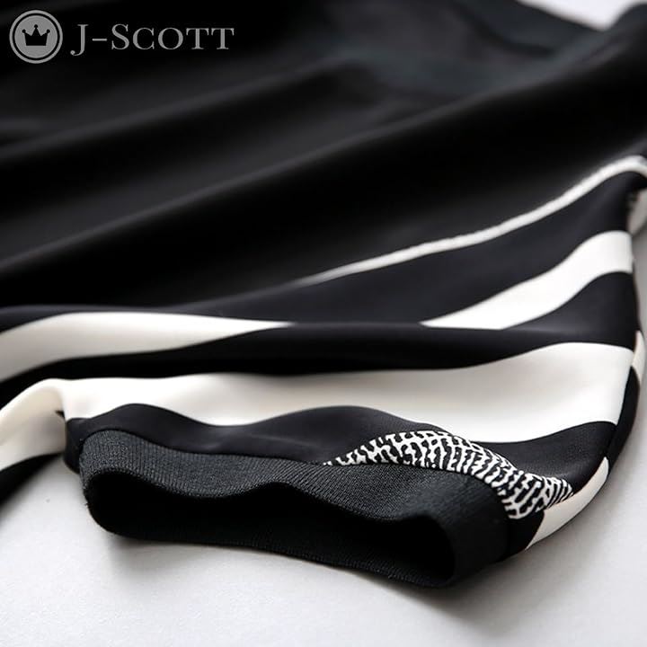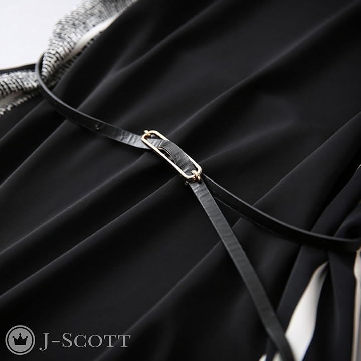 [J-Scott] ベルト付きストライプ柄ワンピース 膝上丈 フレア 半袖 ドルマンスリーブ ラグジュアリー ワンピ 休日デート 春夏 おしゃれ着 春物 カップルフォト 映え 敏感肌 キレカジ ドレス 春ワンピース Tシャツワンピ シルエット モダン JSJS53-BK-XL |