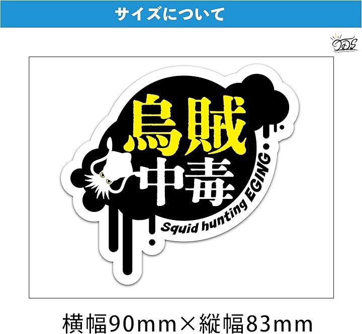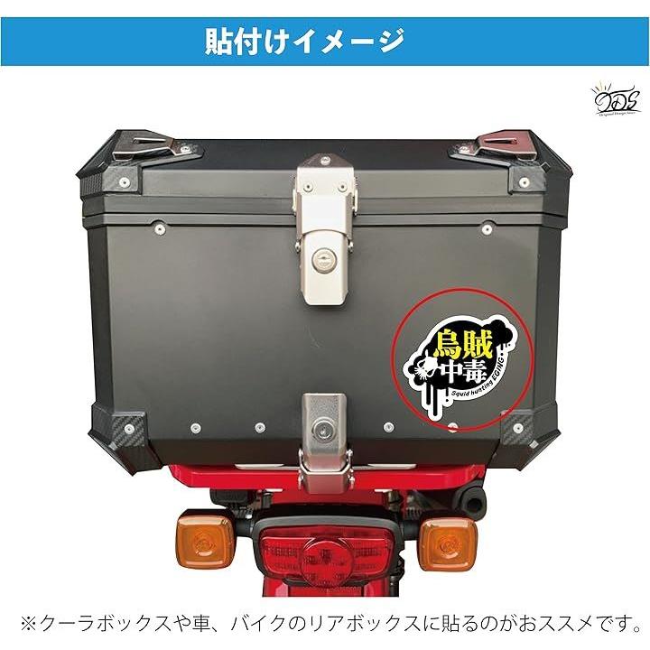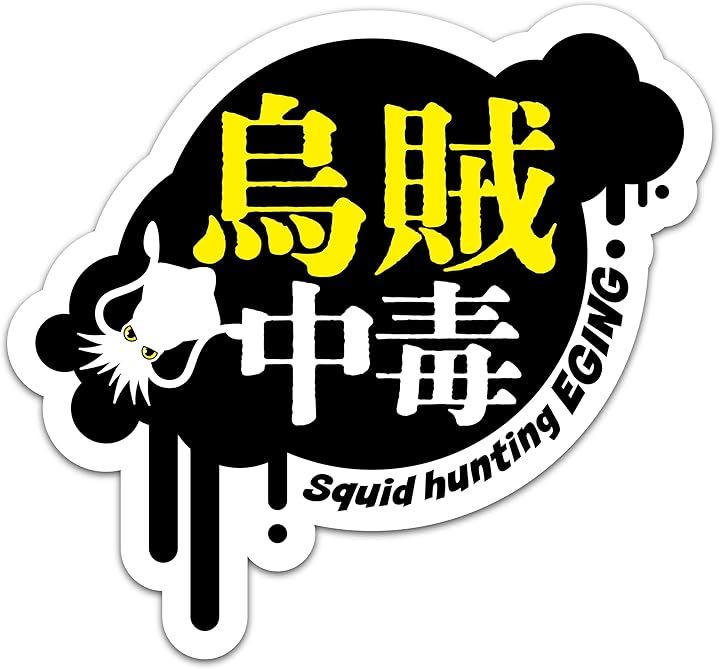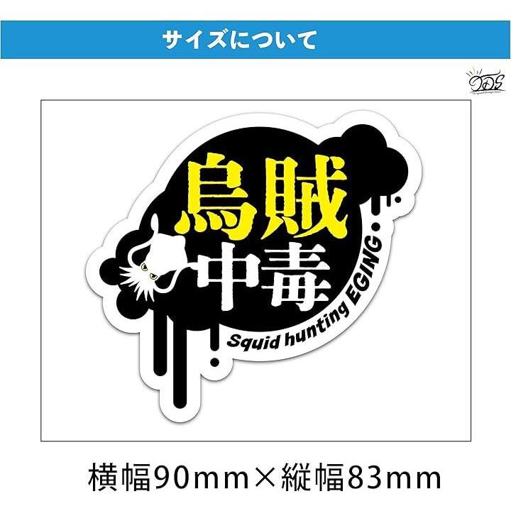 烏賊中毒 釣りステッカー フィッシング キャンプ アウトドア用ステッカー シール W90mmxH83mm 車用 バイク用 イカ クーラーボックス 屋外 防水