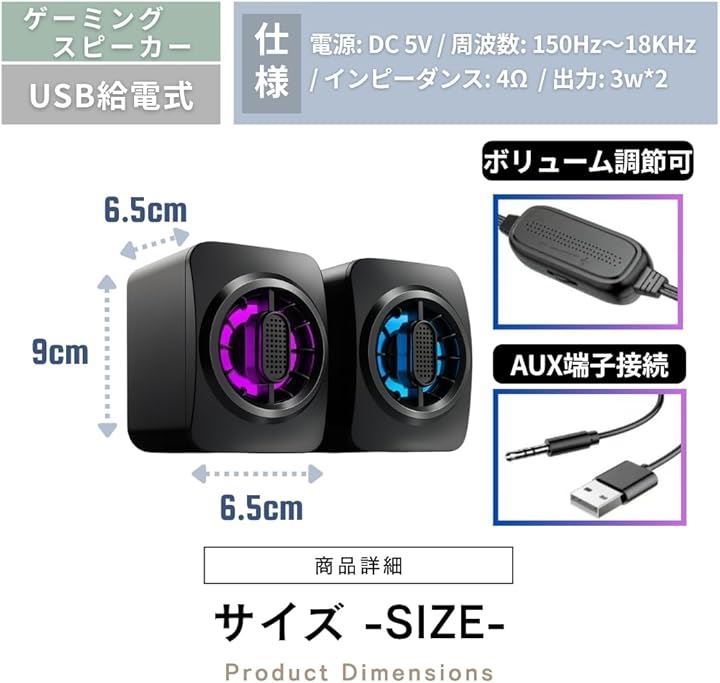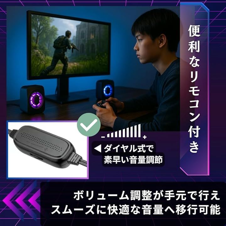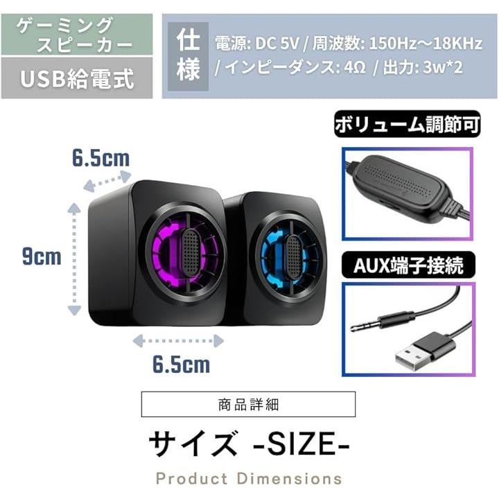 PCスピーカー ゲーミングスピーカー 小型 USB 有線 3.5 mm端子 パソコン モニター テレビにも対応