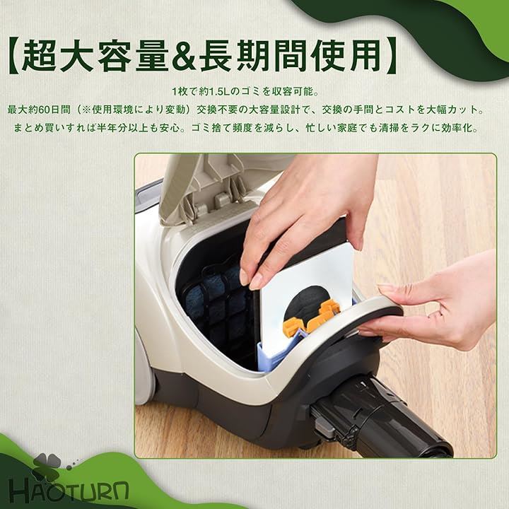 ゴミ漏れや破れの心配がなく、掃除機の性能を最大限に引き出します。