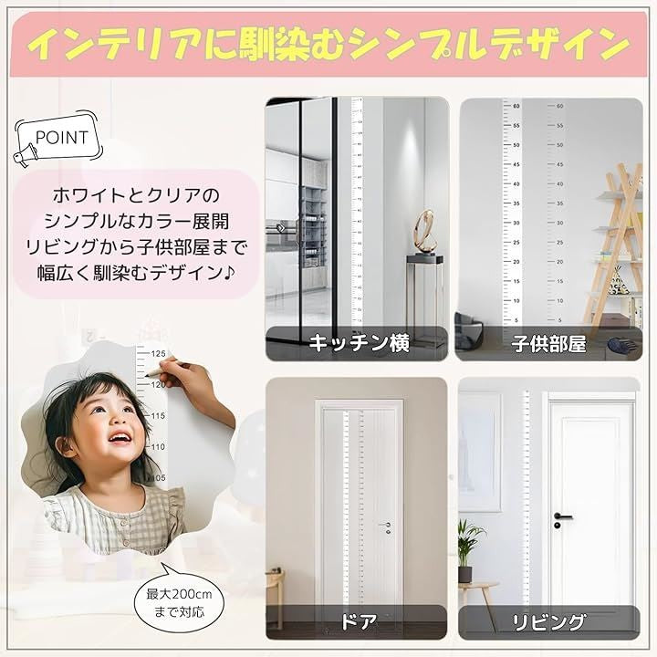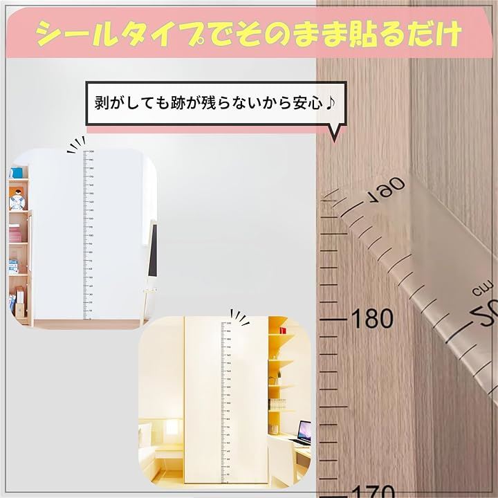身長計 壁掛け ウォールステッカー 身長測定 壁を傷つけない