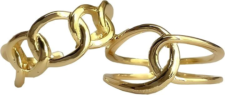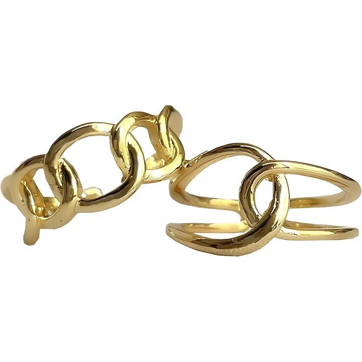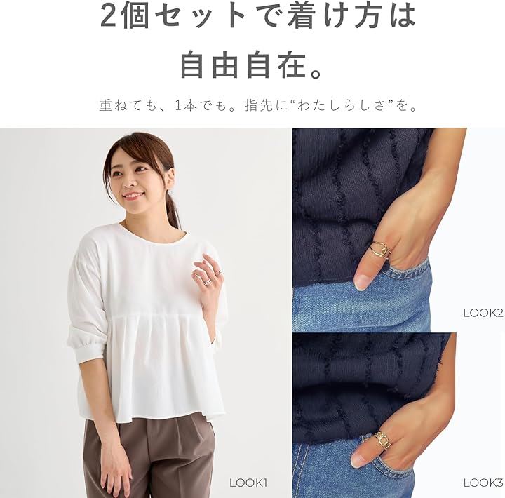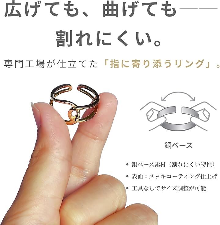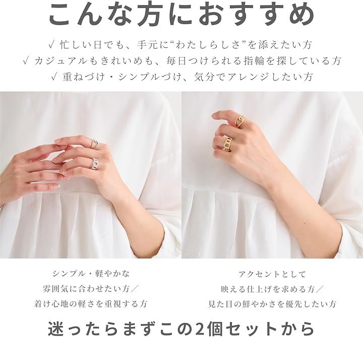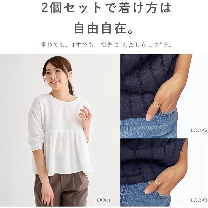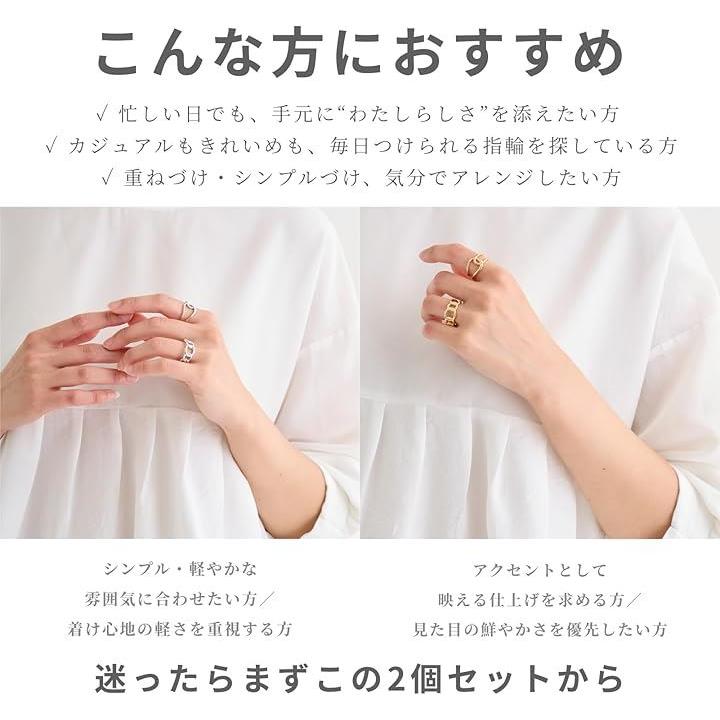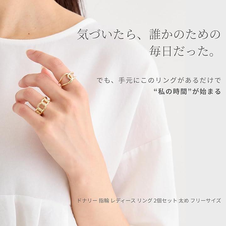 指輪 レディース リング 2個セット アクセサリー 太め フリーサイズ サイズ調整可能 重ね付け 人差し指 錆びにくい アレルギー対応