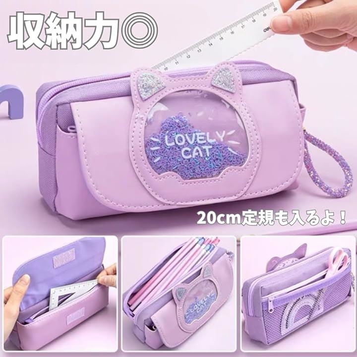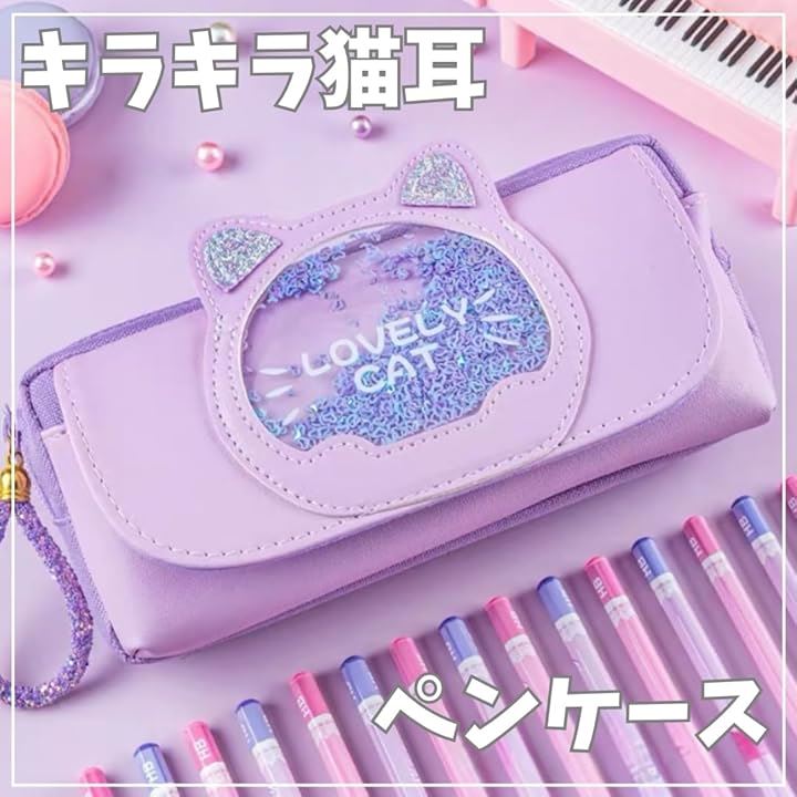 筆箱 小学生 女の子 可愛い 猫 ペンケース きらきら 大容量
