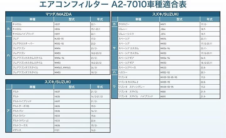 互換品 スズキ車用 カーエアコンフィルター ジムニー シエラ ノマド アルト クロスビー スペーシア ハスラー 4層 活性炭 抗菌 花粉&PM2.5対策