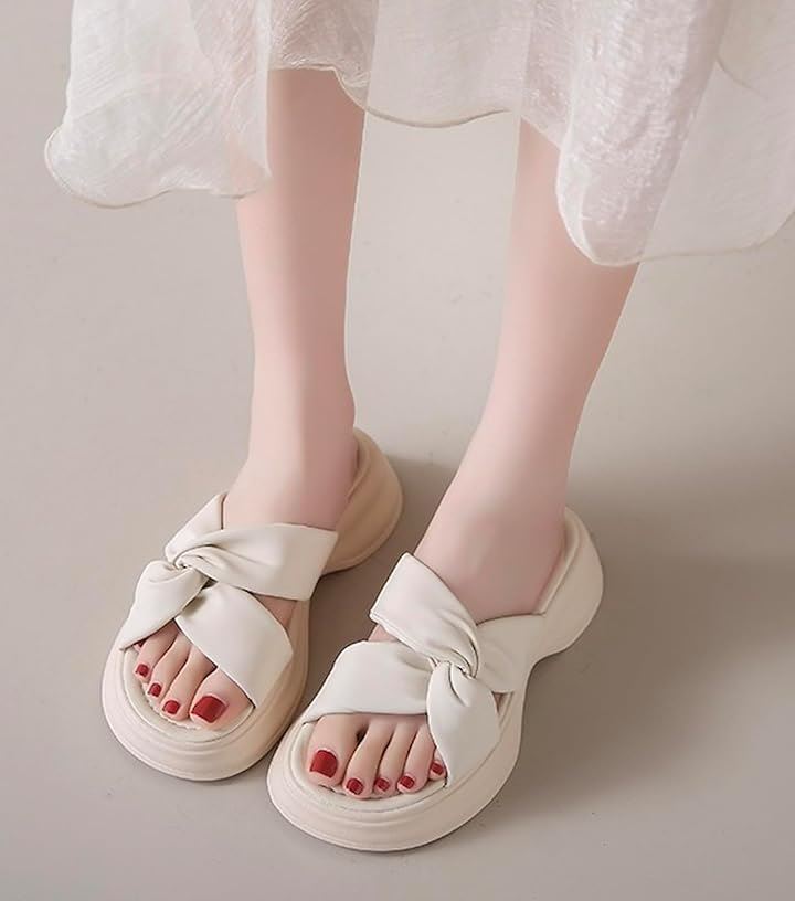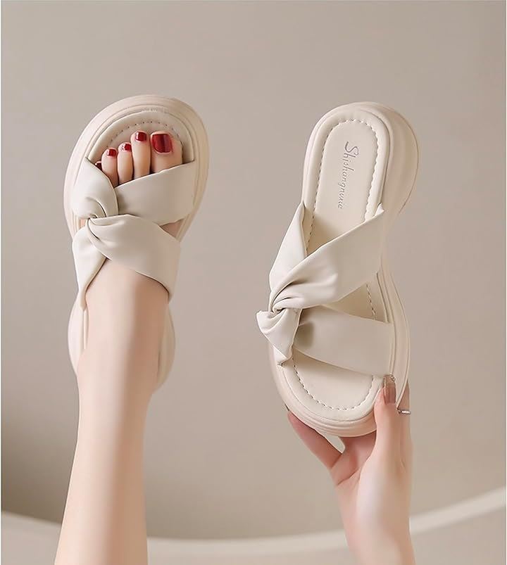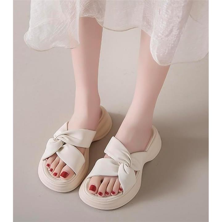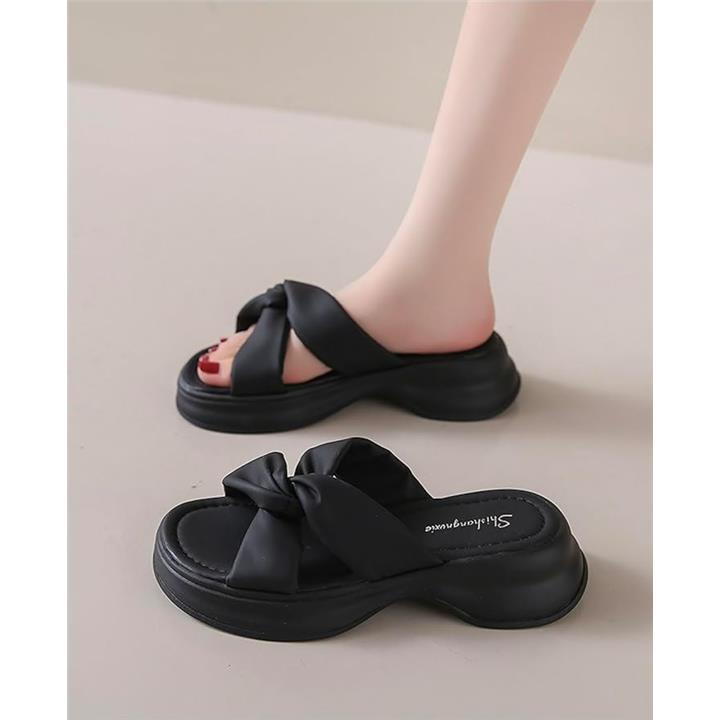厚底 サンダル 編み込み デザイン 柔らか ソール カジュアル 一字型 スリッパ 歩きやすい クッション 性 滑りにくい 無地 レディース オープントゥ お出かけ スリム 滑らない