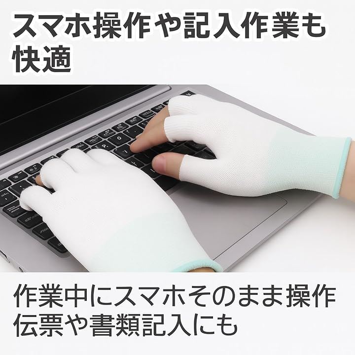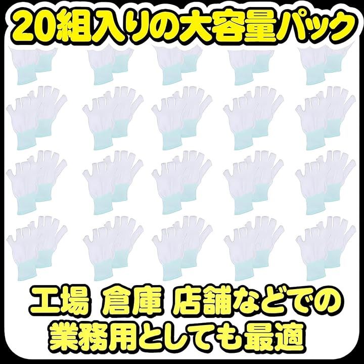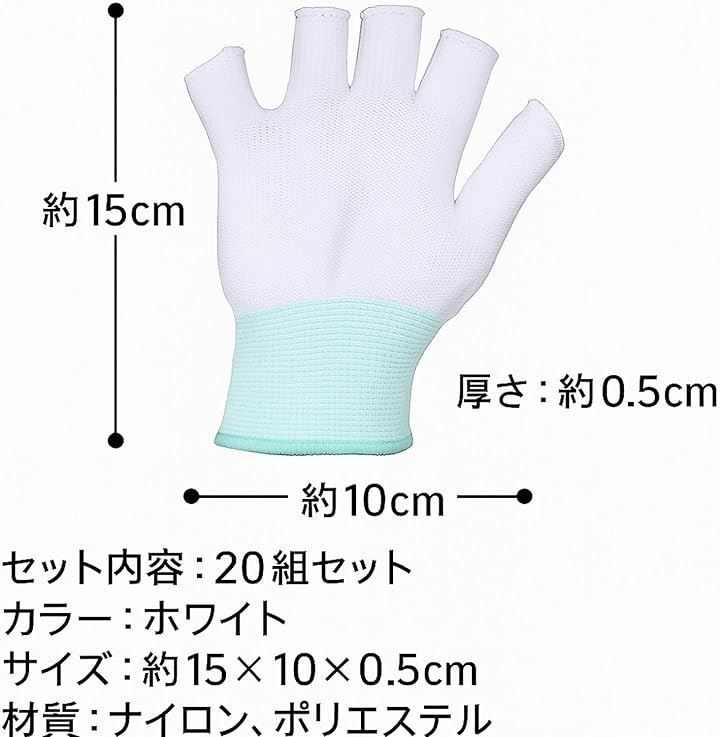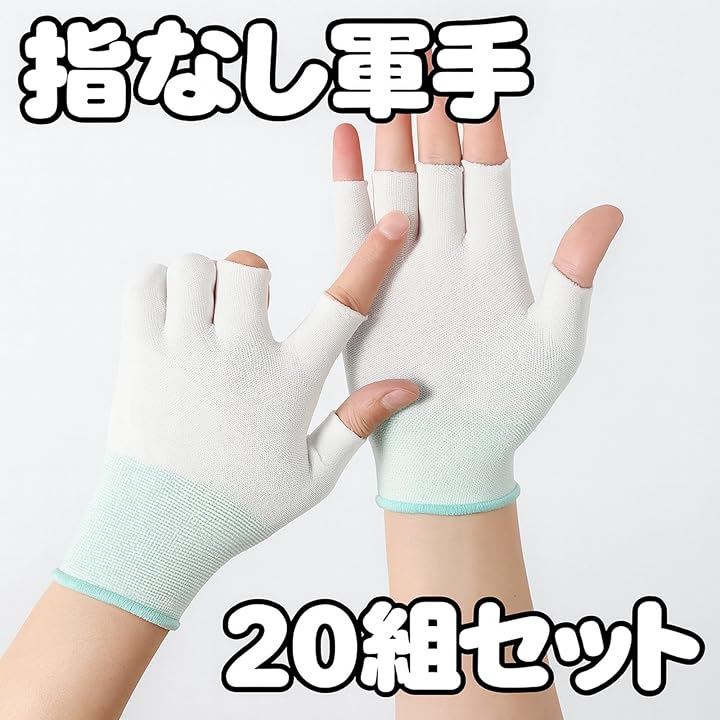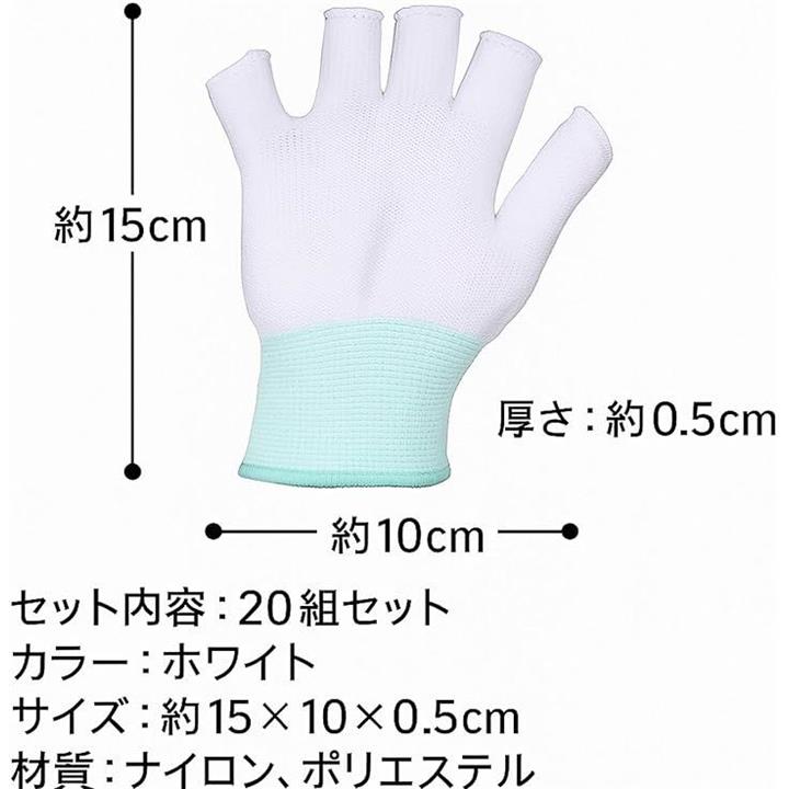 指なし軍手 作業用 グローブ 指ぬき手袋 スマホ対応 軽作業 倉庫 組み立て ホワイト 20組セット 通気性 夏用 業務用
