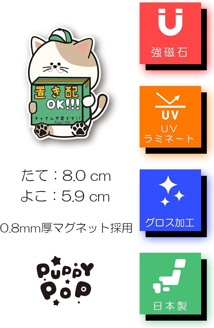 置き配 マグネット チャイム不要 80x80mm 強磁石 耐水 高耐久