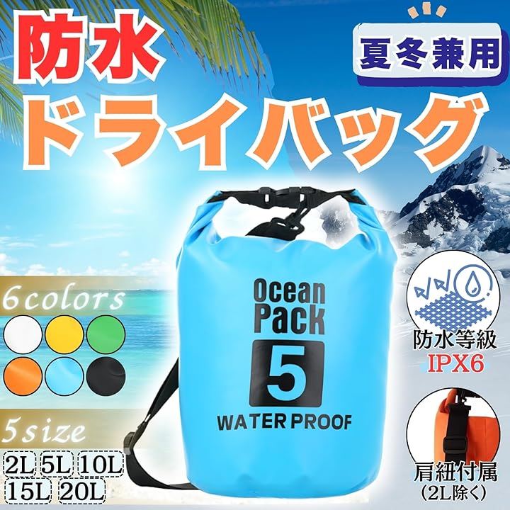 「サイズ・カラー」サイズは2L/5L/10L/15L/20Lとコンパクトから大容量まで幅広く取り揃えていますので、荷物の量や使用シーンに合わせてお選びください。