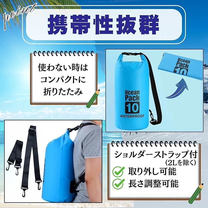 cocoriko 防水バッグ ドライバッグ 大容量 ショルダーストラップ付 スタッフバッグ アウトドア マリンスポーツ ダイビング 海水浴 プール 釣り 防災 |