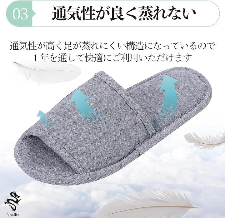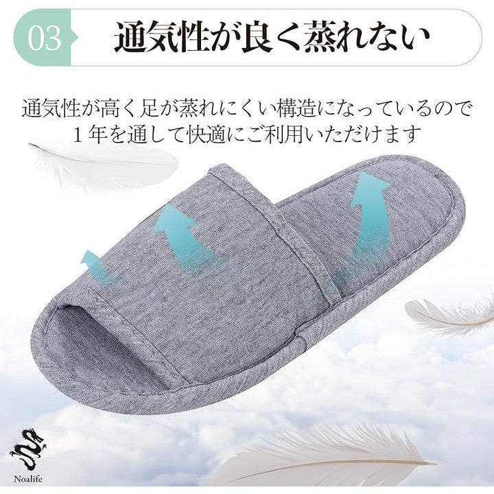 通気性が良く蒸れない:こちらの折りたたみ 携帯スリッパはつま先が開いているので通気性が高く足が蒸れにくい構造になっているので1年を通して快適にご利用いただけます。