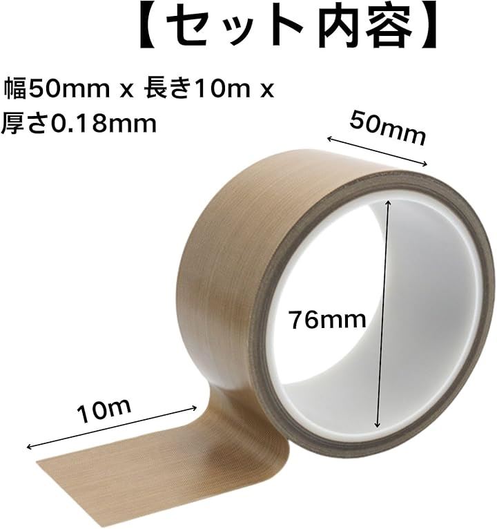 HOTQ テフロンテープ 高耐久 耐熱 高温テープ 防塵 防油 汚れない 燃えない 耐摩 防蝕 防水 耐圧 補修 作業 50mmx10m