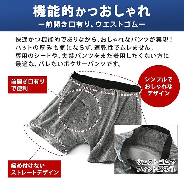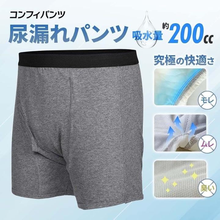 xx履き心地はどうですか?xx この尿漏れパンツは、見た目はボクサータイプのパンツで、伸縮性のある素材を使用しており、体にぴったりフィットします。