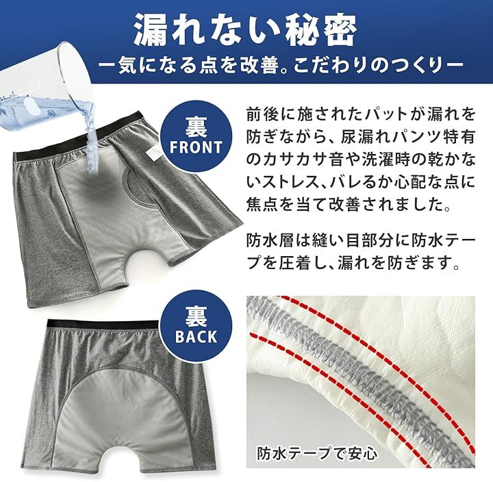 見た目も通常のボクサーパンツと変わりませんので、はじめて着用する方でも安心して購入いただけます。