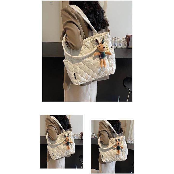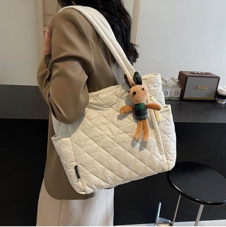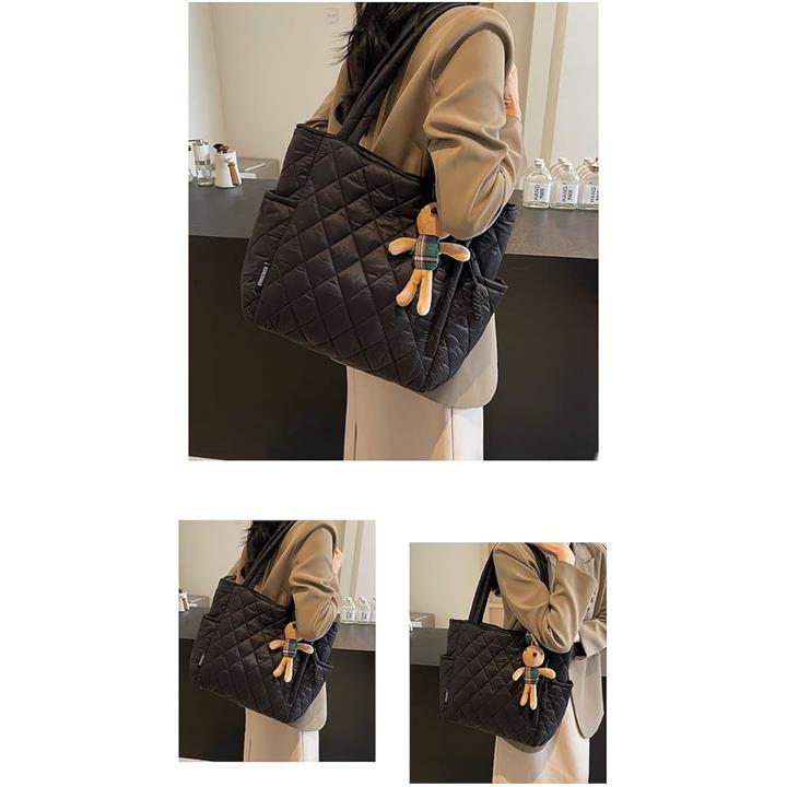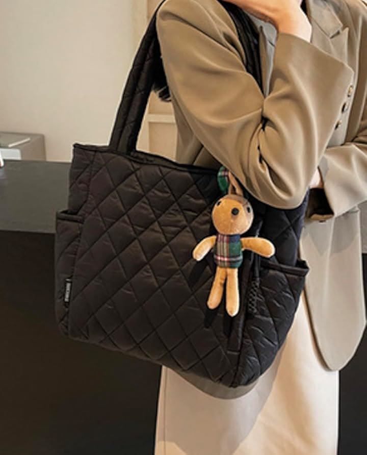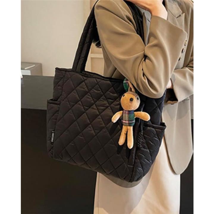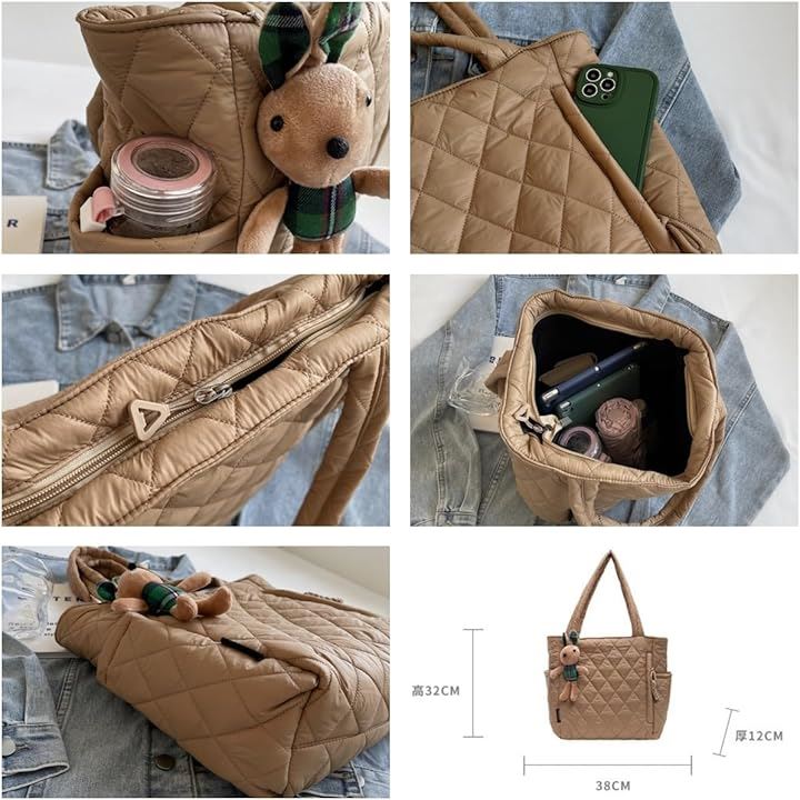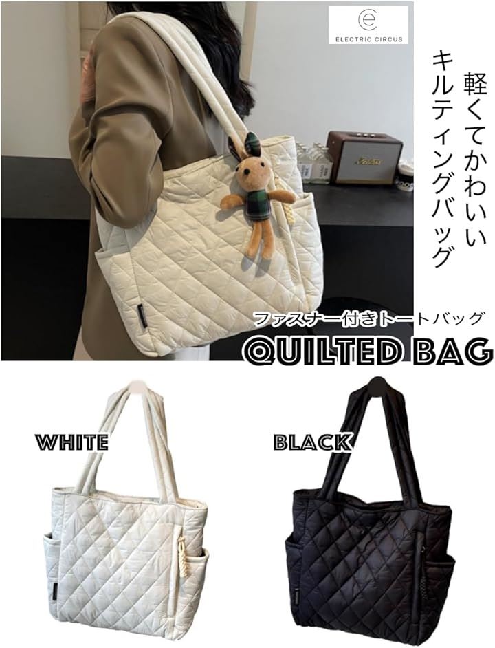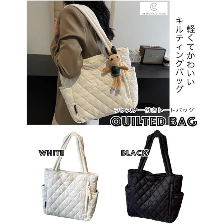 キルティング トートバッグ ファスナー付き 軽いバッグ 肩掛け ショルダーバッグ 通勤 通学 旅行 出張