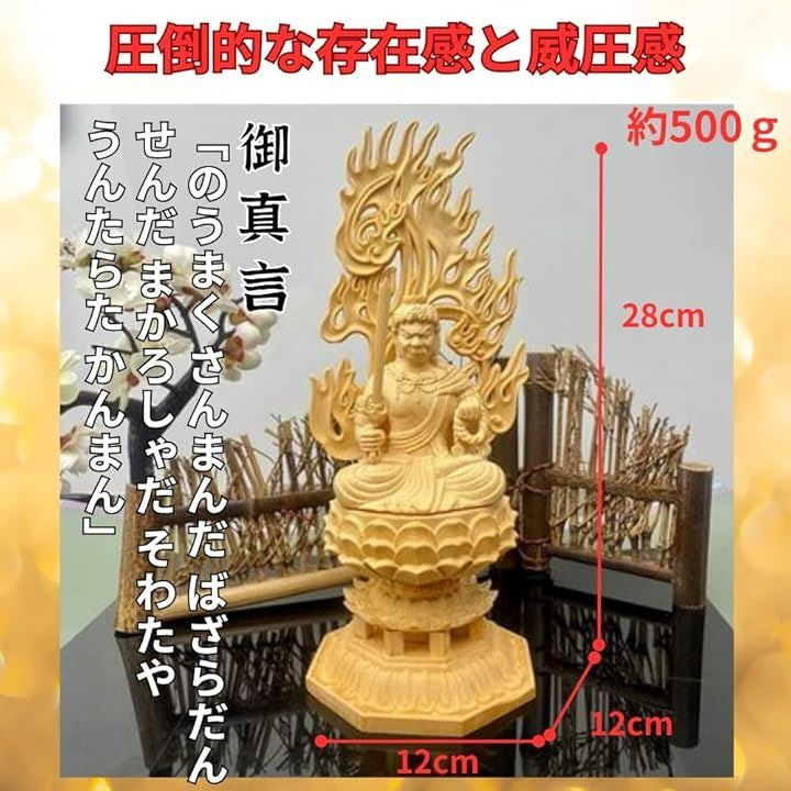 仏像 不動明王 木彫り 仏壇仏像 置物 桧木製 守り本尊 悩み 祈る 厄除け 八角台座 火炎光背 御利益 功徳