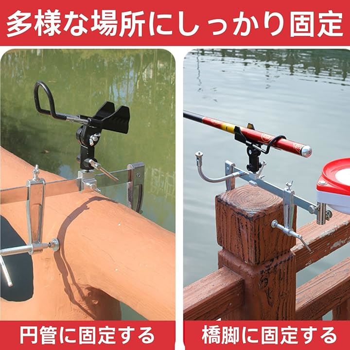 HOTQ 竿受け ロッドホルダー 竿置き 船 堤防 30cm幅 360度回転 角度調節 多機能 夜釣り 絵釣り 釣竿 スタンド