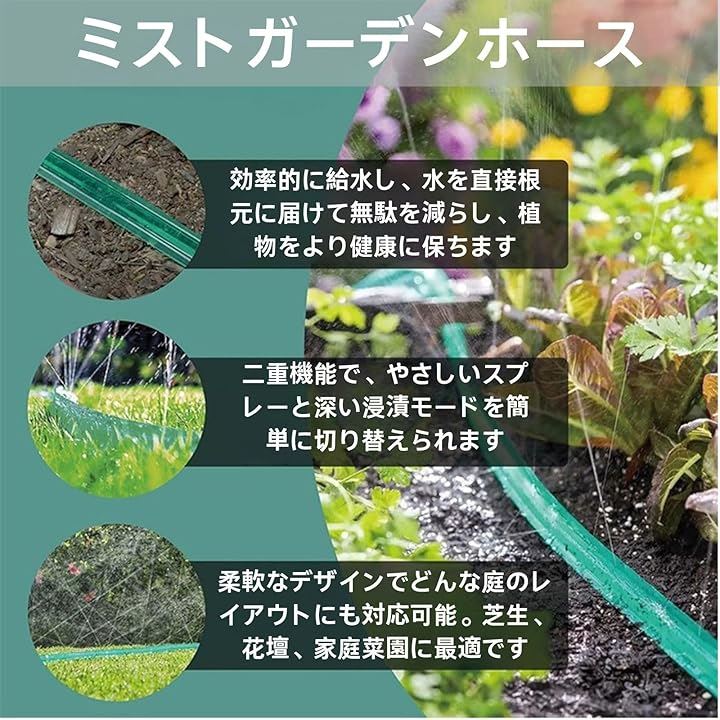 HOTQ 散水チューブ リップ灌漑ホース 15m 穴あけタイプ 潅水 水やりホース ガーデニング 冷却システム 農業 花壇 観葉 植物 散水用