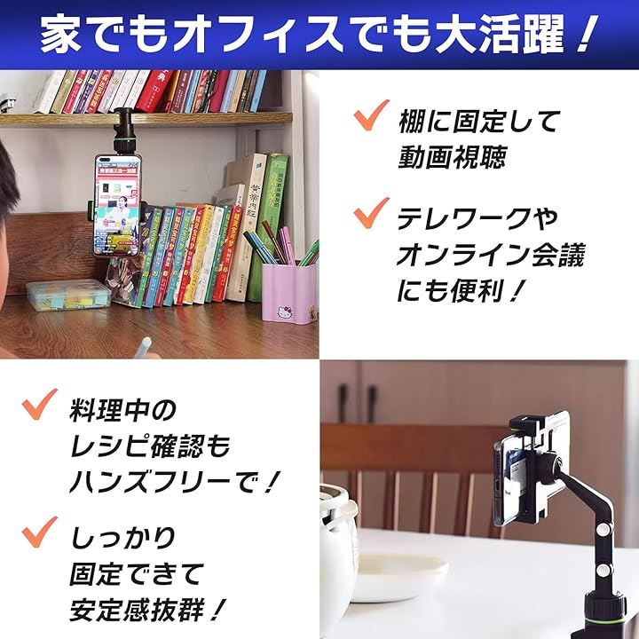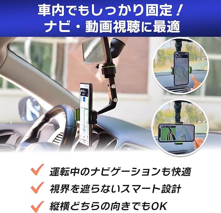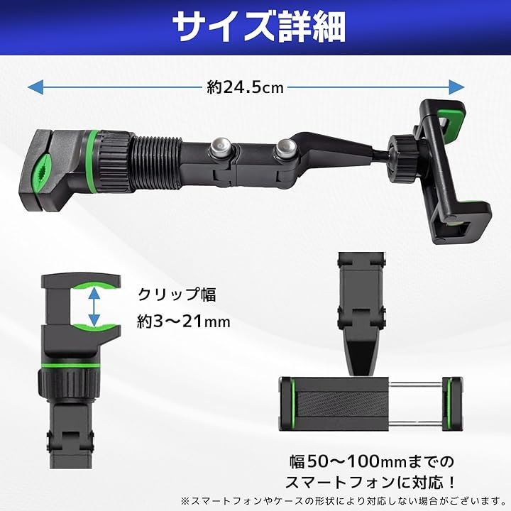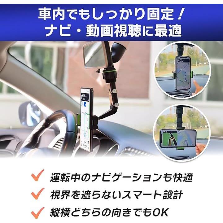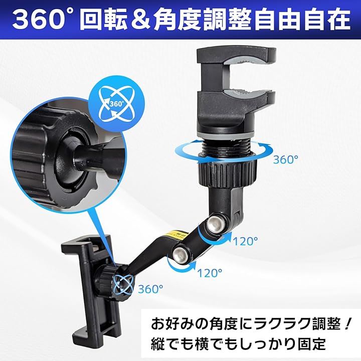 スマホホルダー 車載 ミラー取付 ハンズフリー ベッド テーブル キッチン 多機種対応 スマホスタンド クリップ式 簡単取付