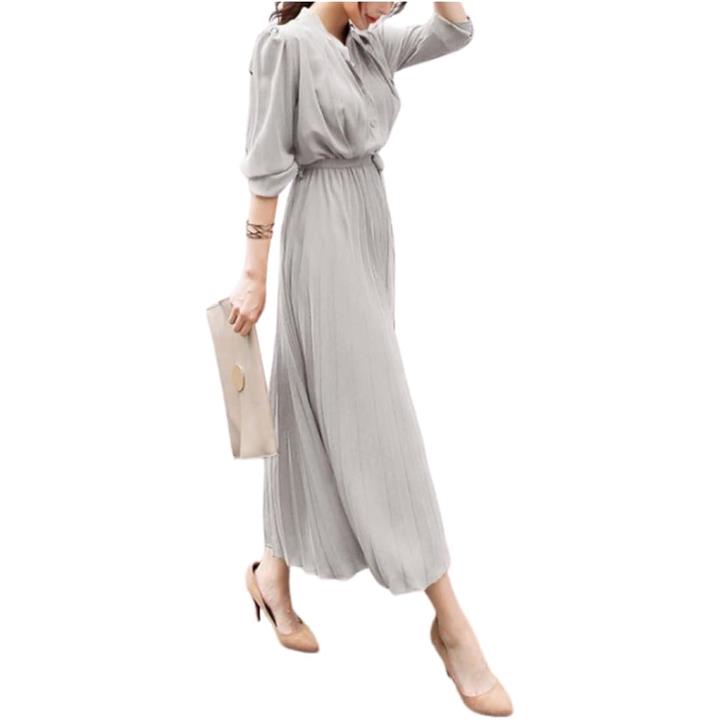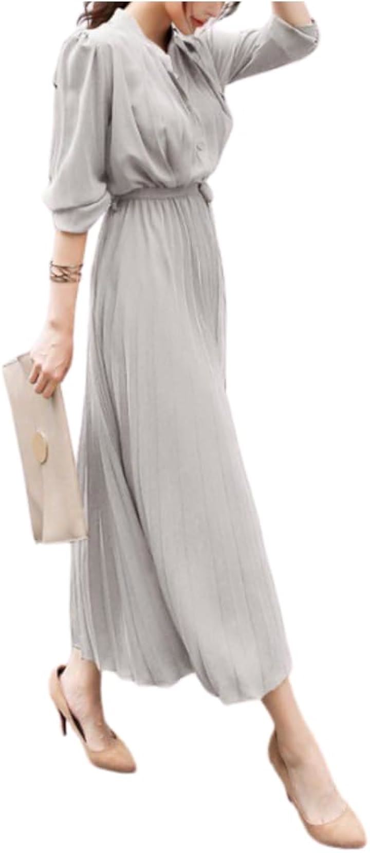 [ROOOOM] 大人カジュアルの決定版・体型カバーもできるフレアワンピース レディース ロング丈 Aラインシンプルデザイン |