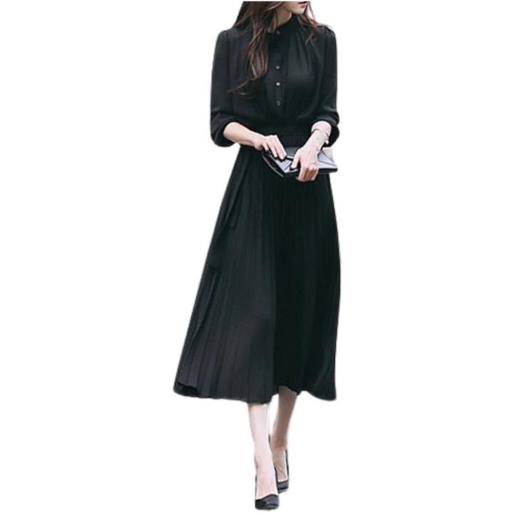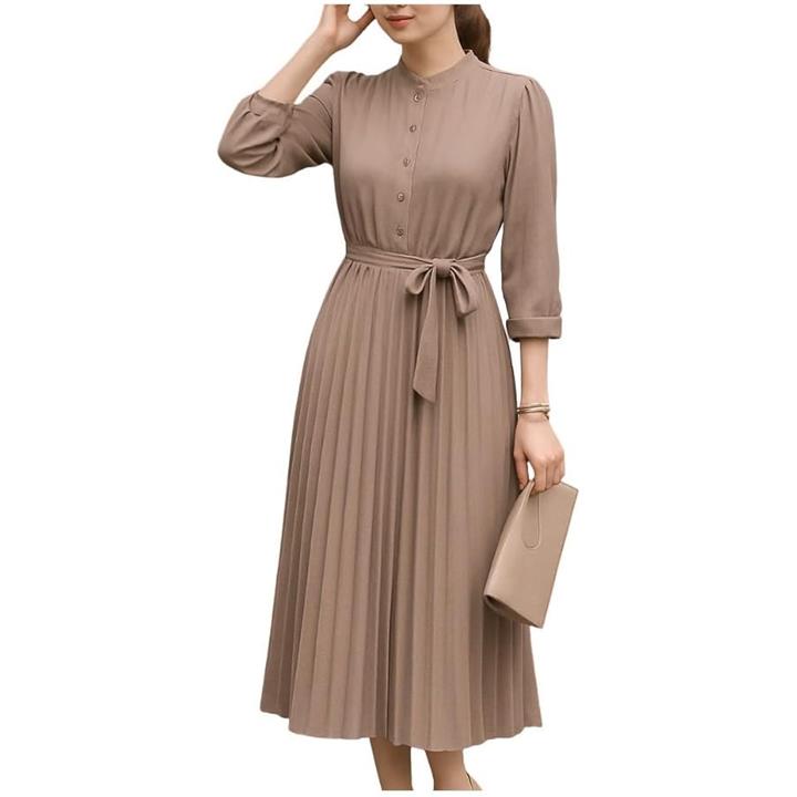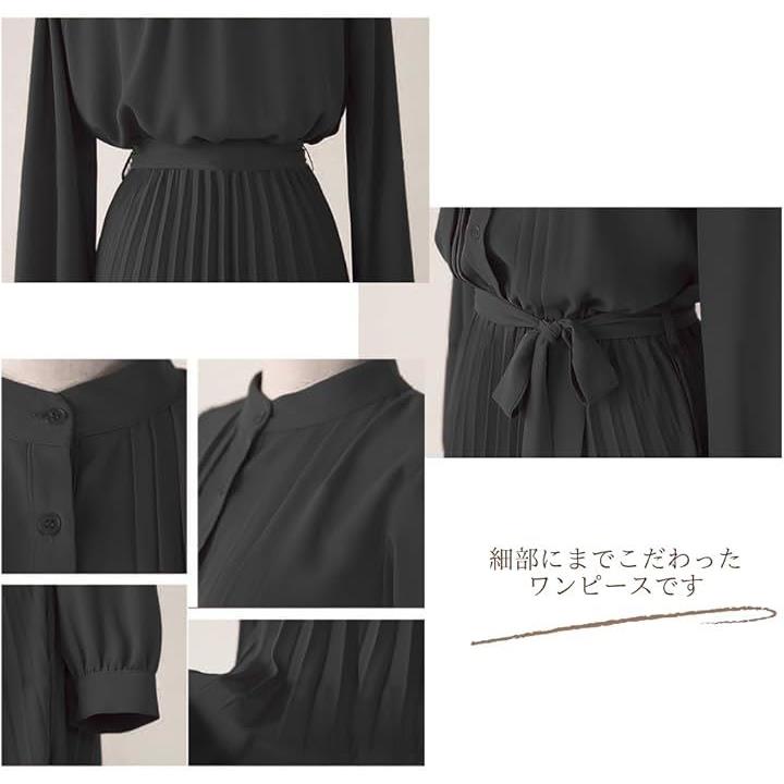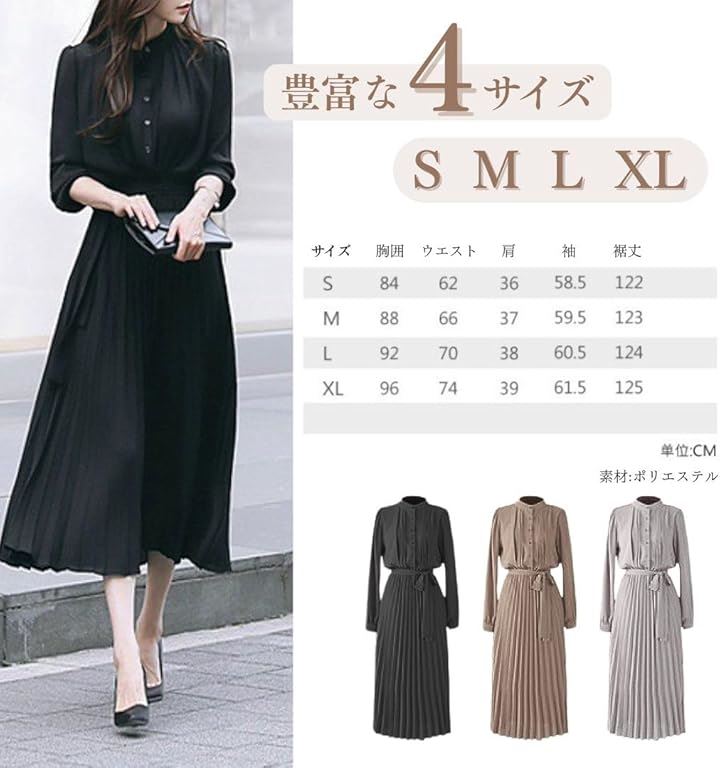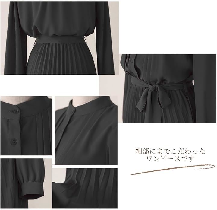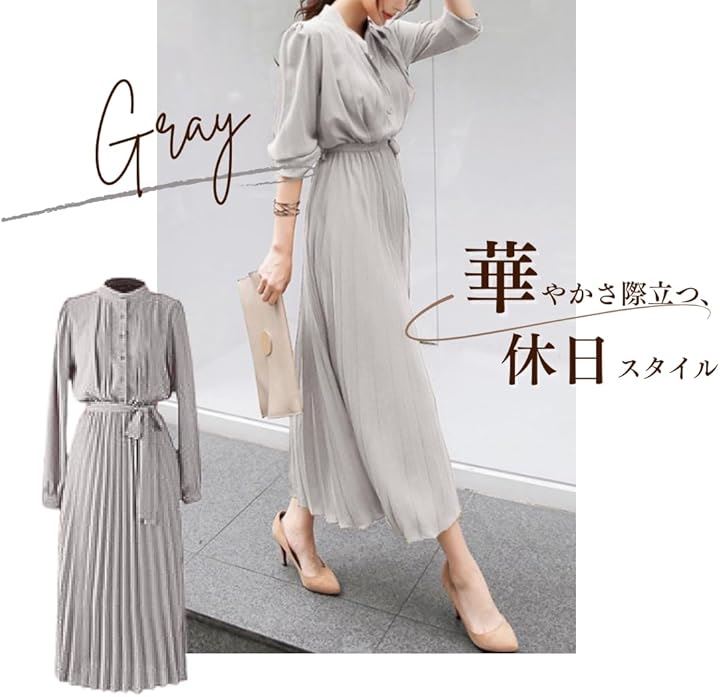 ハイウエストの切り替えデザインと、ふんわり広がるAラインが自然と体型をカバーしながら、女性らしい華やかさを引き立てます。