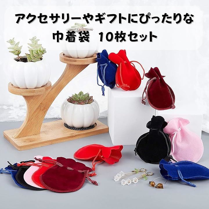 巾着袋 ベロア調 10枚セット ジュエリーポーチ アクセサリー収納 小物入れ ギフト袋 プレゼント用