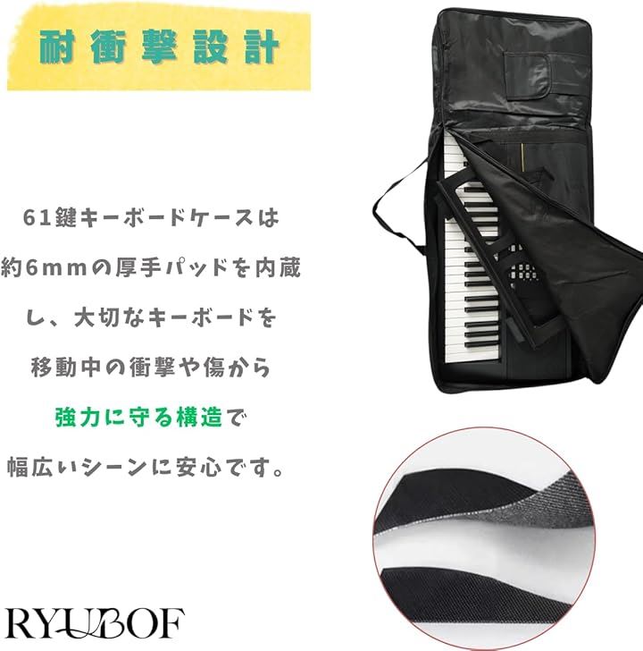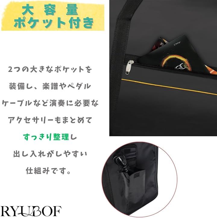 61鍵 キーボードケース ソフトケース 3way リュック 肩掛け 手提げ 防水 オックスフォード生地 耐衝撃 大容量ポケット 軽量 持ち運び簡単 楽譜収納対応