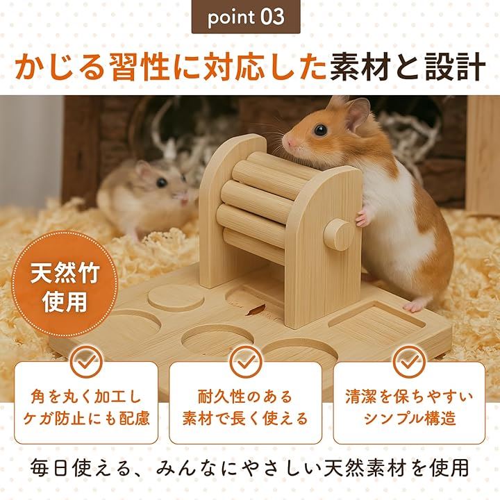 多頭飼育やプレゼントにも対応しやすいモデル:知育性と遊び心を兼ね備えたこの木製おもちゃは、1匹でも複数でも活用しやすい設計となっており、小動物たちが互いの動きを観察しながら遊ぶことで、自然な社会性を育むきっかけにもなります。