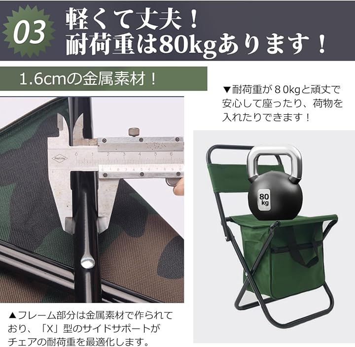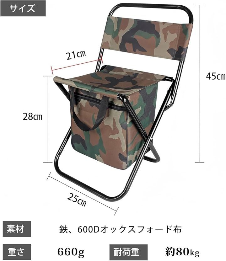 収納 付き 折りたたみ 椅子 キャンプ アウトドア 釣り バーベキュー チェア 軽量 コンパクト