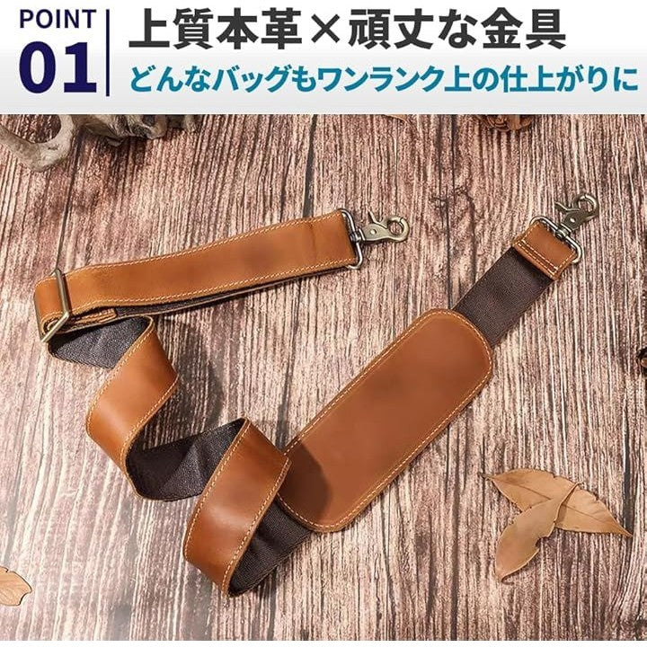 ショルダーベルト 太め ショルダーストラップ 革製 単品 メンズバッグ用 肩掛けベルト 肩パッド 幅3.8cm 長さ調整可能