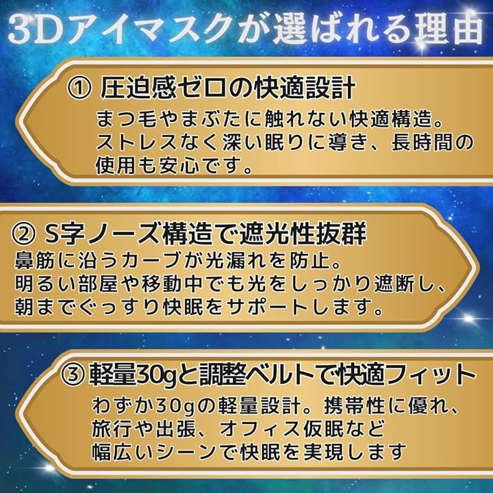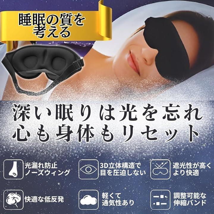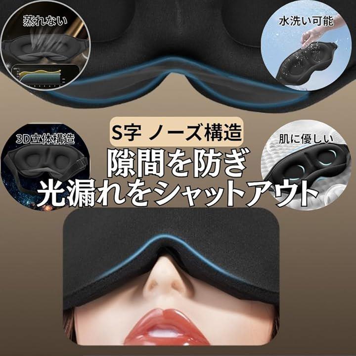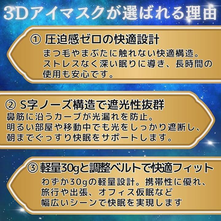 アイマスク 睡眠用 3D立体構造 遮光率99.9% 通気性 軽量 圧迫感なし サイズ調整可 快眠 昼寝 瞑想 出張 旅行 男女兼用